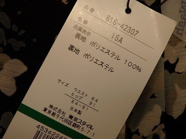 | ・ブランド名:LEPORTE ・サイズ:9 ・素材:表地~ポリエステル100% 裏地~ポリエステル ・平置実寸:W32.5 総丈73.5 <素人採寸ですので多少の誤差はお許しください> ・新品-タグつき(全部では、ないかもしれません) ・めだった汚れシミは無い様に思います ・花柄、エレガントスカートになります ・サイドファスナーです ・手洗い可能です ※汚れシミなど出来る限りチェックしておりますが万一見落とし等ございましたらお許しください※ | |||