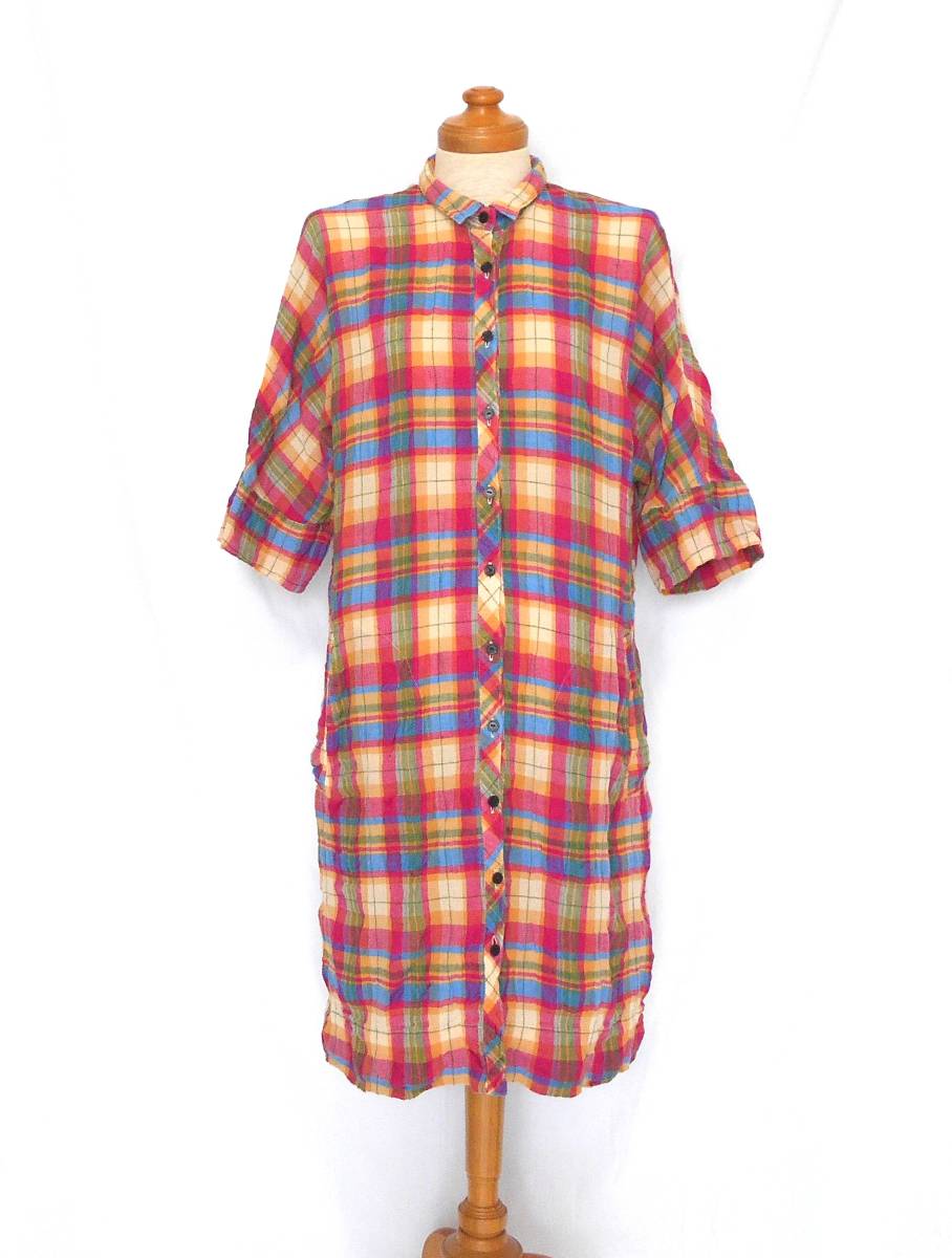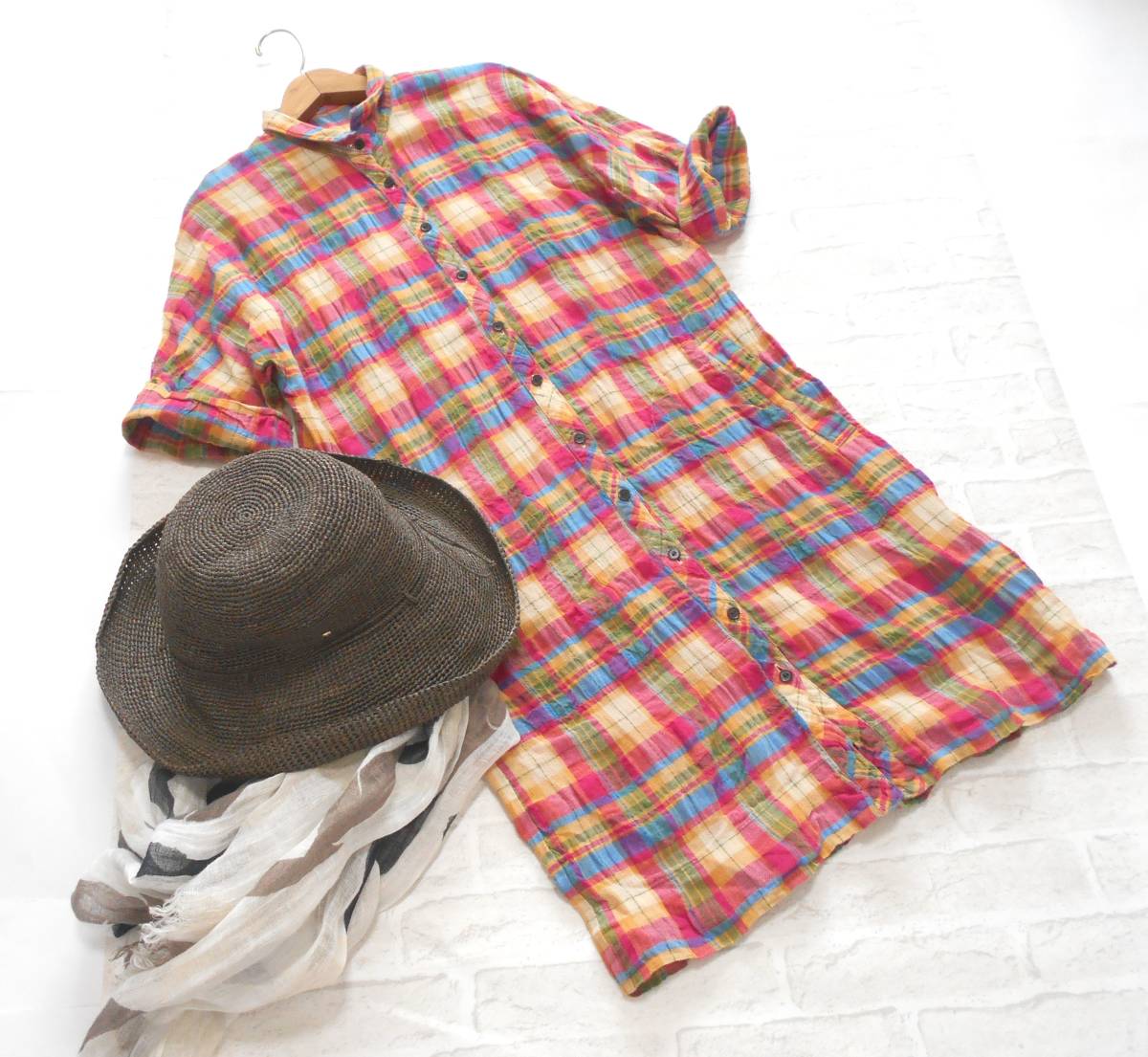 | MACPHEE(マカフィー)のチェック柄リネンシャツワンピースです。 | ||