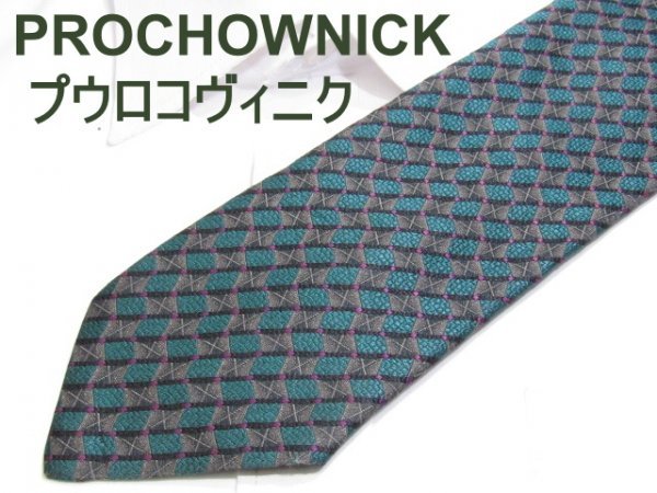 A 503 プウロコヴィニク ネクタイ PROCHOWNICK 緑色系 格子柄 ジャガード