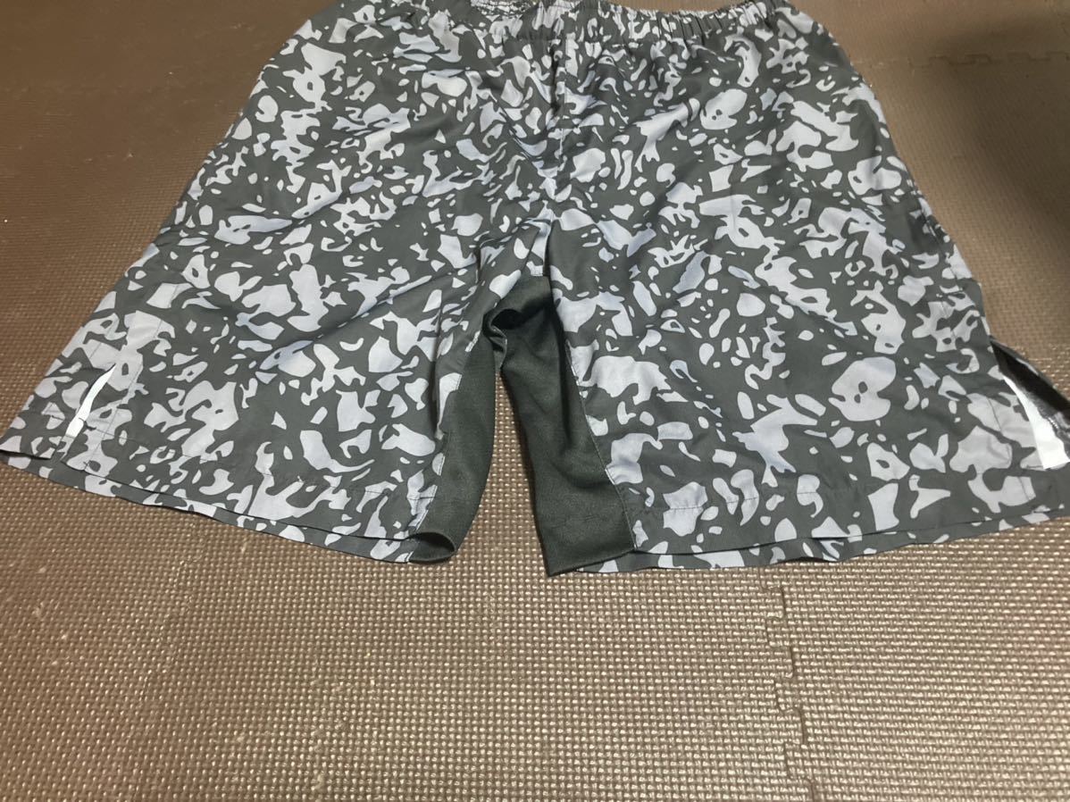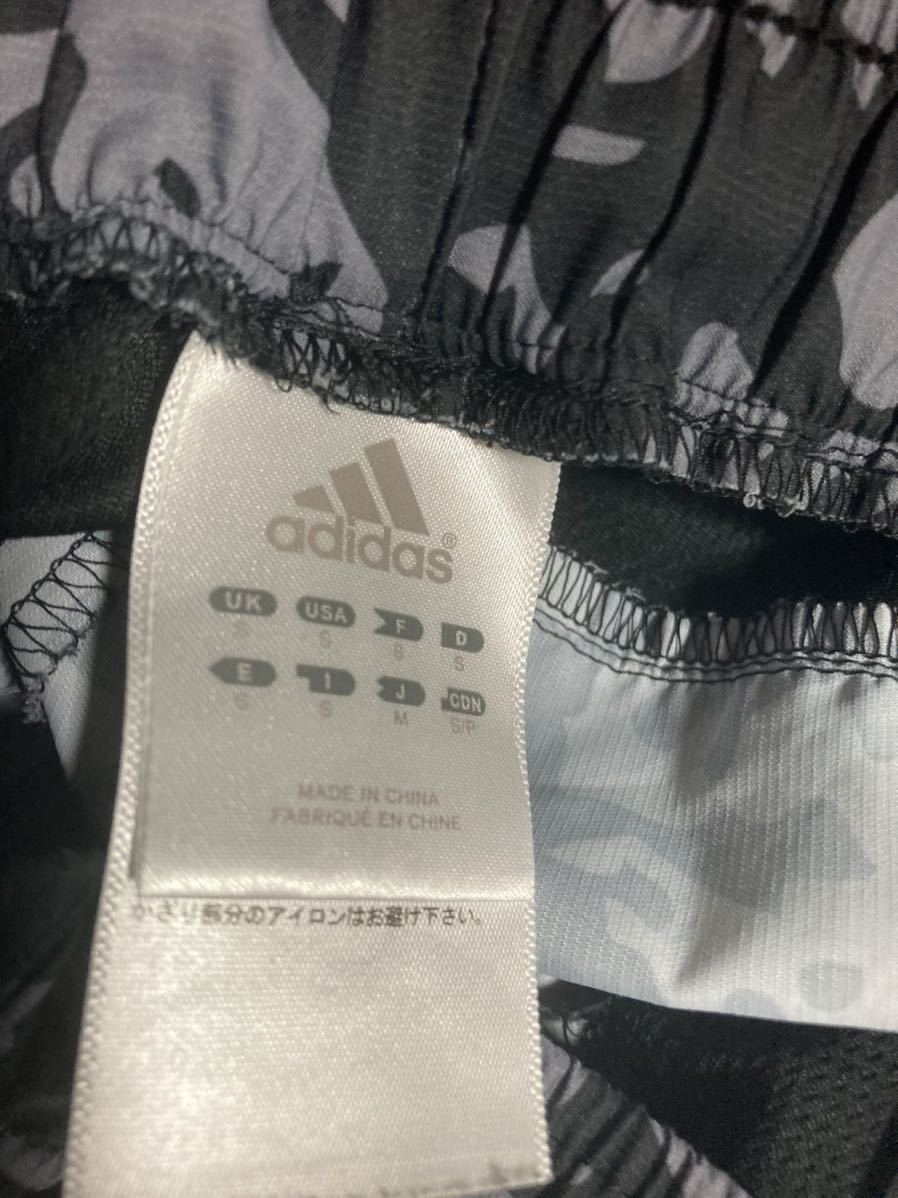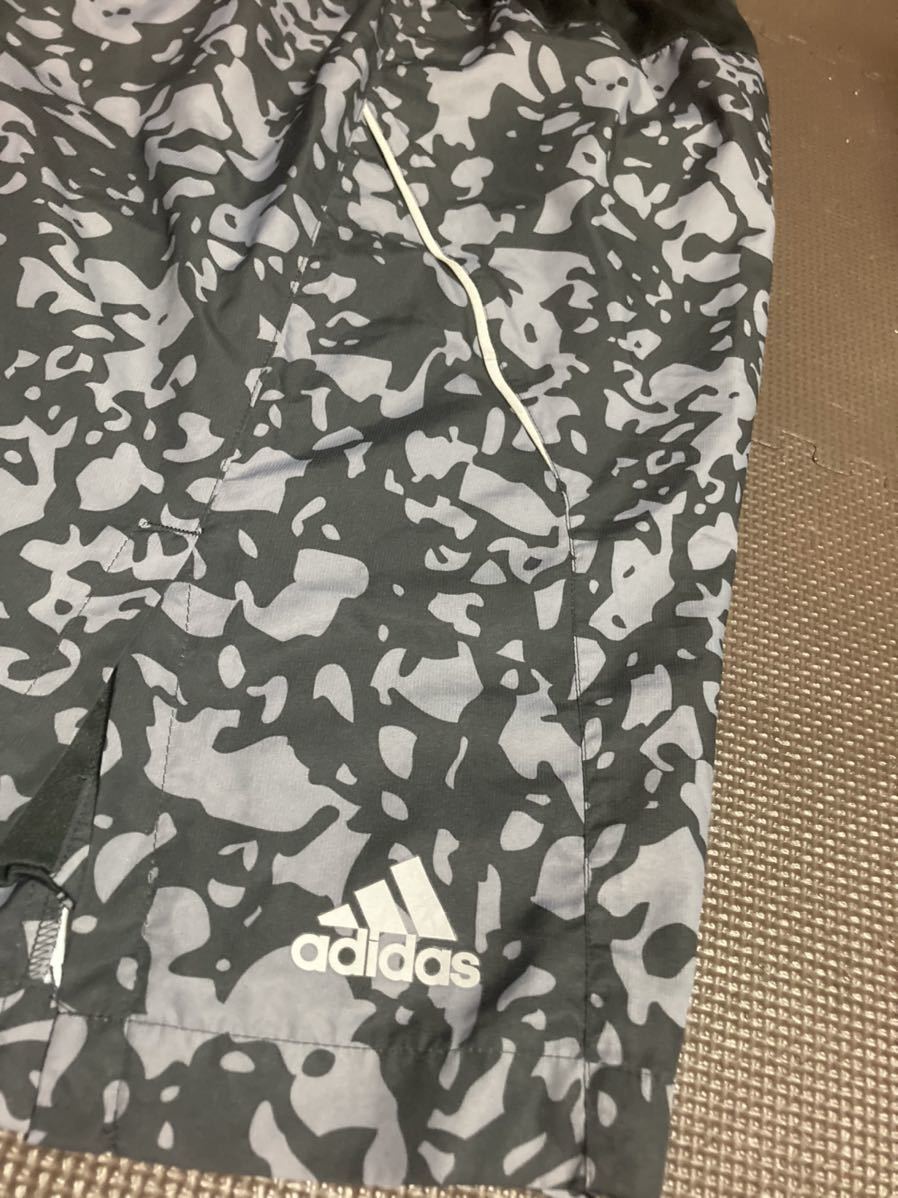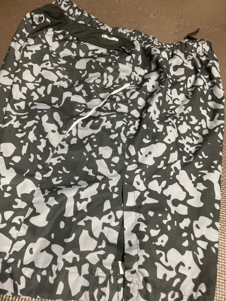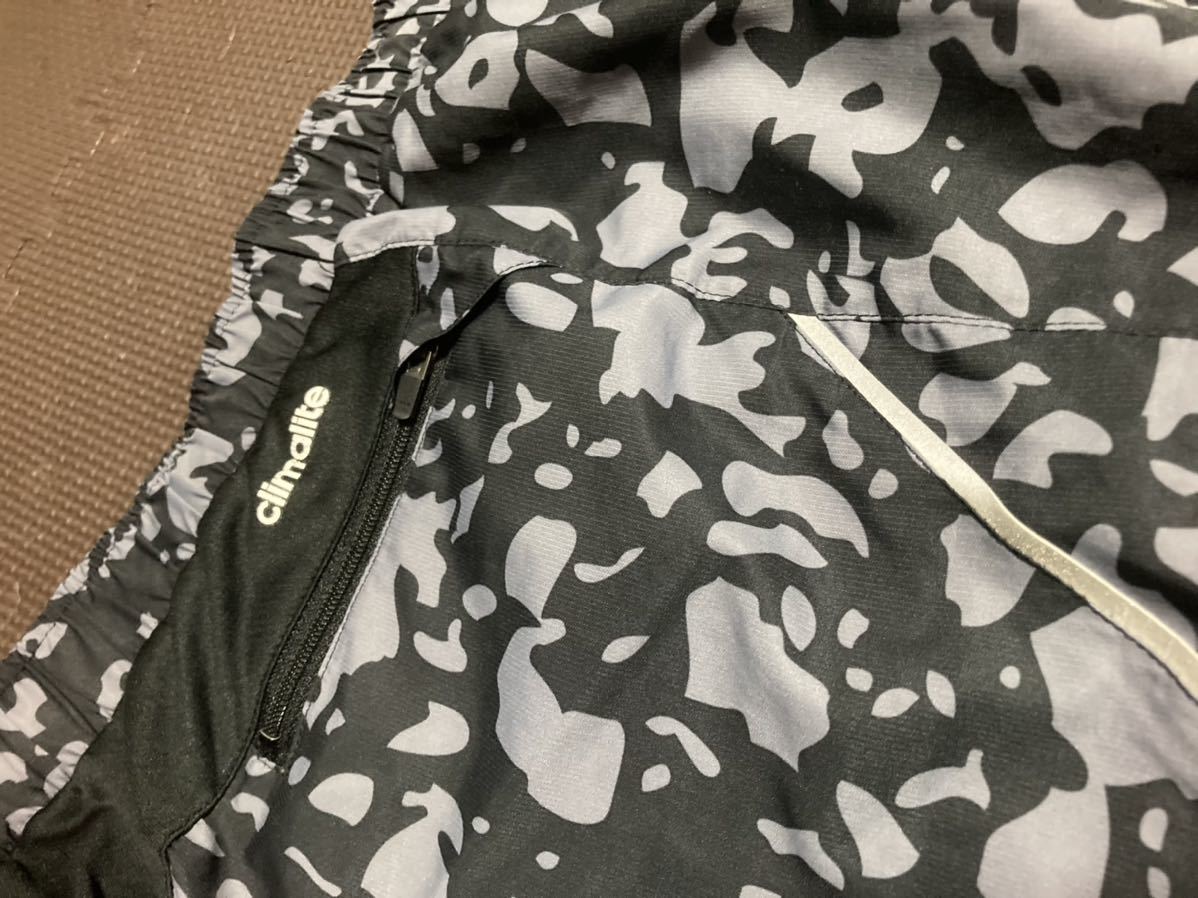 超美品adidas黒、グレー柄入り、ロゴ、ライン反射板ストレッチハーフパンツ