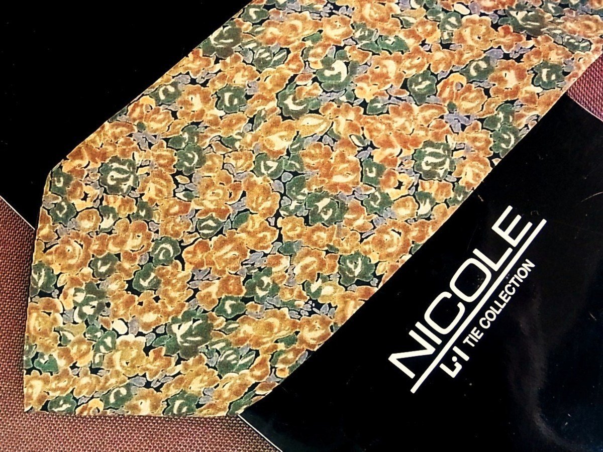♪4822D♪状態並品【花 植物 葉っぱ 柄】ニコル【NICOLE】ネクタイ