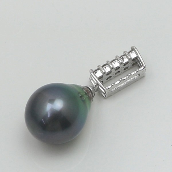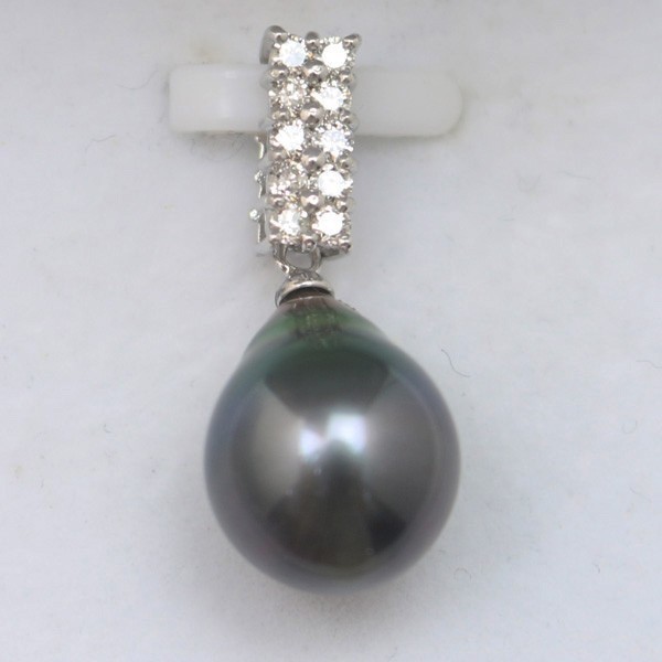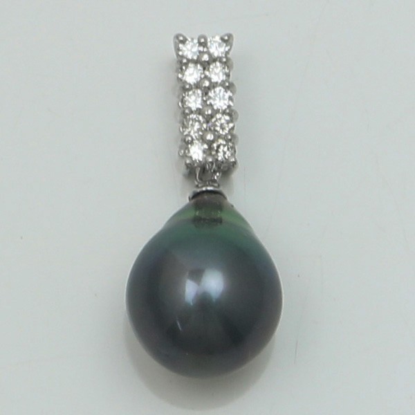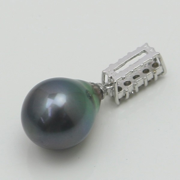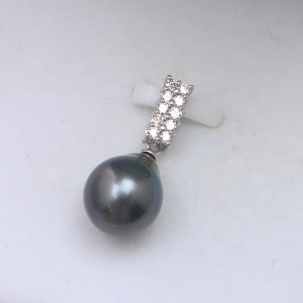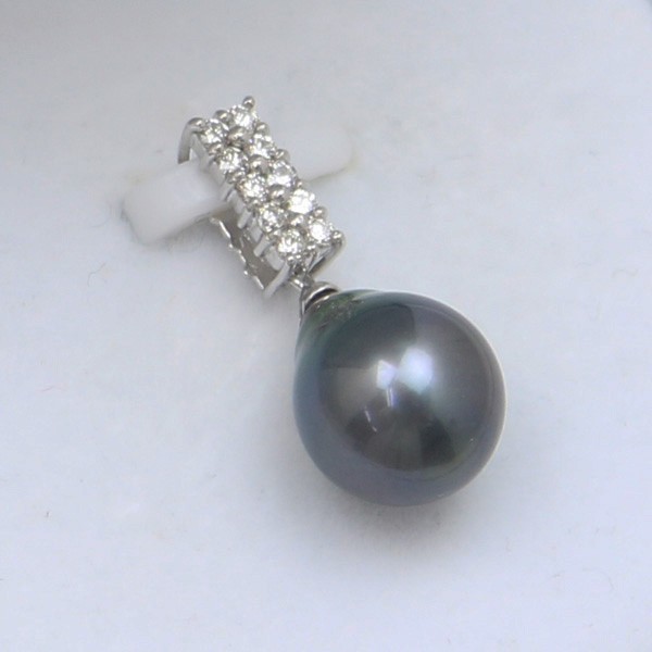 真珠 パール ペンダント 黒蝶真珠 パールペンダント 10mm-11mm ダイヤ デザイン 黒真珠 ブラックパール ブラックカラー K18WG |