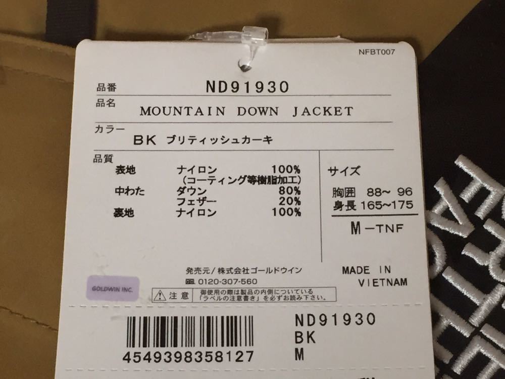 国内正規品 THE NORTH FACE MOUNTAIN DOWN JACKET ノースフェイス マウンテンダウンジャケット BK M