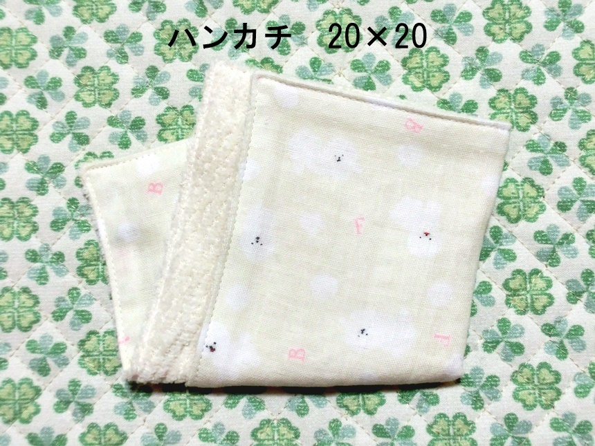 ポケットに収まりやすい、ハンドメイド・正方形20×20センチのダブルガーゼ&タオルのハンカチです。