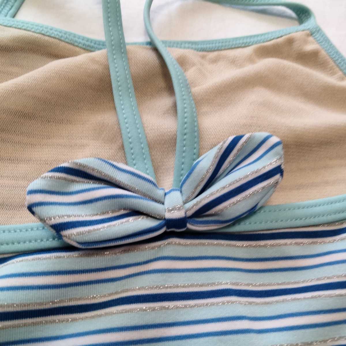 キッズ水着 110 西松屋 ワンピース水着 水色系ストライプ シルバーラメ入り 女の子 子ども 220806