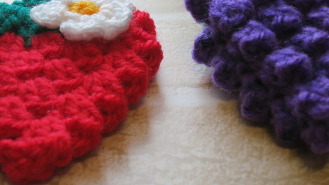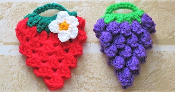 いちご、ぶどうをセットにしたエコたわしです。 2枚合わせになっています。