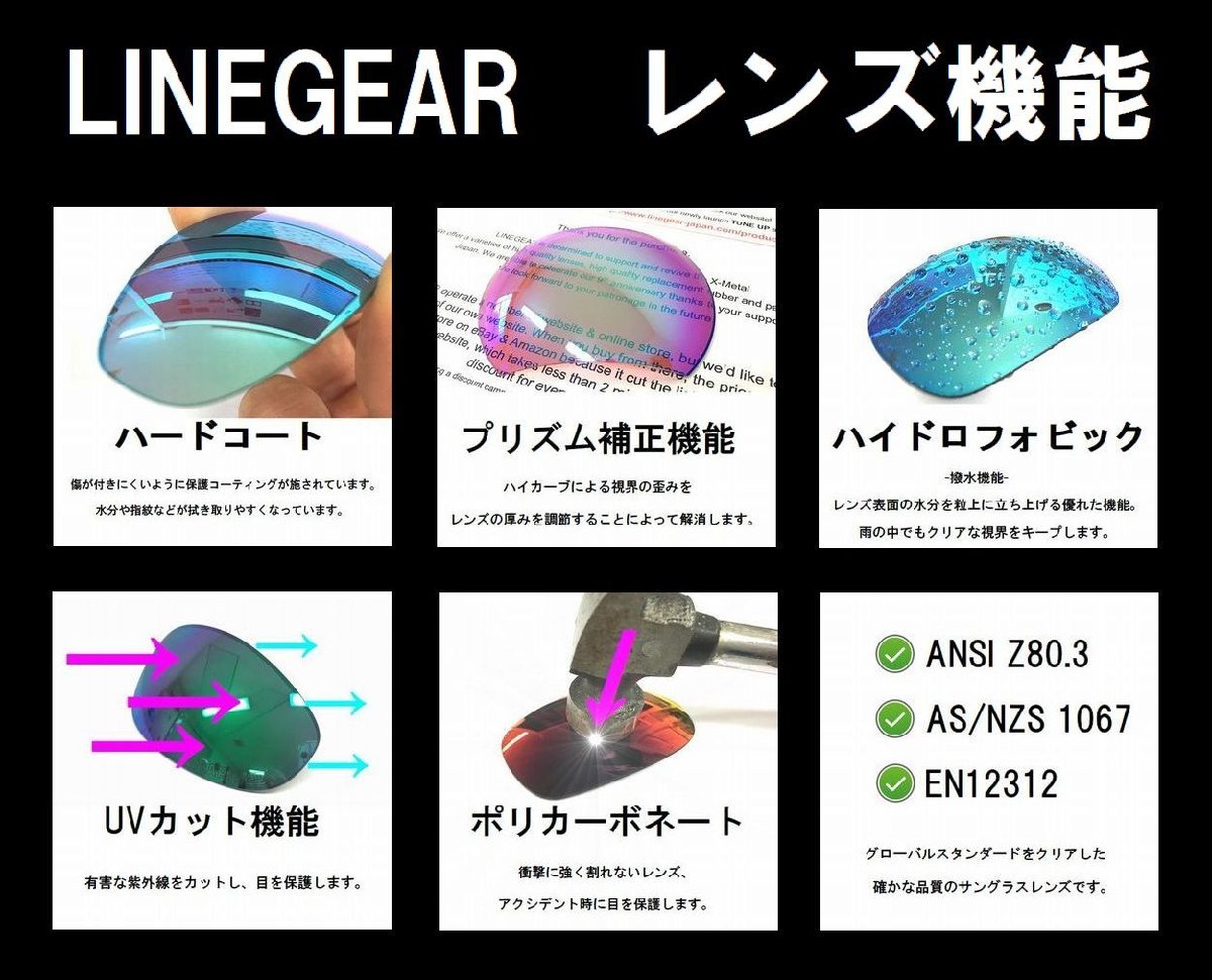 第1世代と第2世代の見た目の形状は全く同じですが、レンズのサイズが違います。必ずレンズの横幅を確認してから購入ください。レンズの横幅は約62mmになります。 (初期モデルのレンズの小さいモデル用のレンズになります。)ブラウンレンズに明るいアイスブルー。ミラー反射時はミラーが強調されますが、ミラー反射が無いときはやや目が透けて見える感じになります。OKALEYのG30と同じような感じです。レンズを通しての視野は明るい印象で、コントラストのある視野を与えてくれます。プリズム補正機能、ハイドロフォビック、反射防止コーティング(裏面)などのついている高機能レンズです。<レンズの詳細>・ミラー:ライトブルー・ベースレンズ:ブラウン・透過率:34.91%・レンズカーブ:8・レンズの厚さ:1.7mm - 1.5mm・夜間の運転不可 /昼間の運転可※レンズ交換は手でパチンと外してパチンと取り付けるだけです。※画像に写っているフレームは付属しません。 レンズ(1ペア)のみの出品になります。