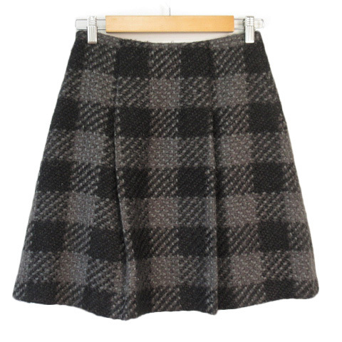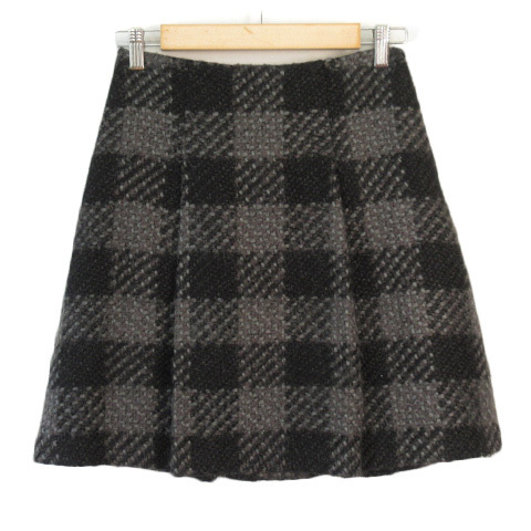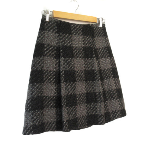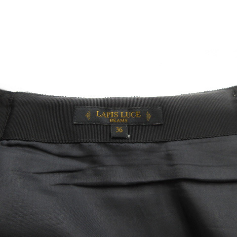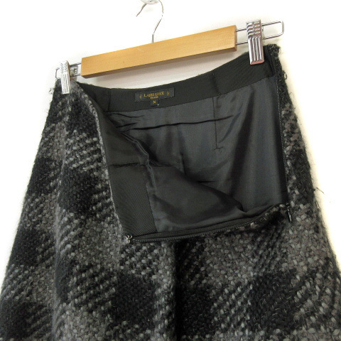 ラピスルーチェパービームス LAPIS LUCE PER BEAMS スカート タック ツイード チェック ウール モヘヤ 36 黒 ブラック レディース