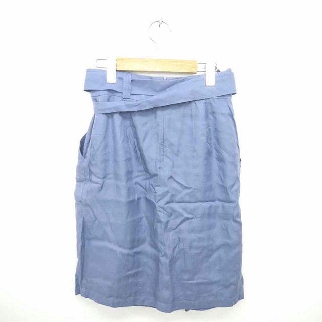 ボッシュ BOSCH スカート タイト ひざ丈 薄手 べルト バックジップ 36 青 ブルー /TT12 レディース