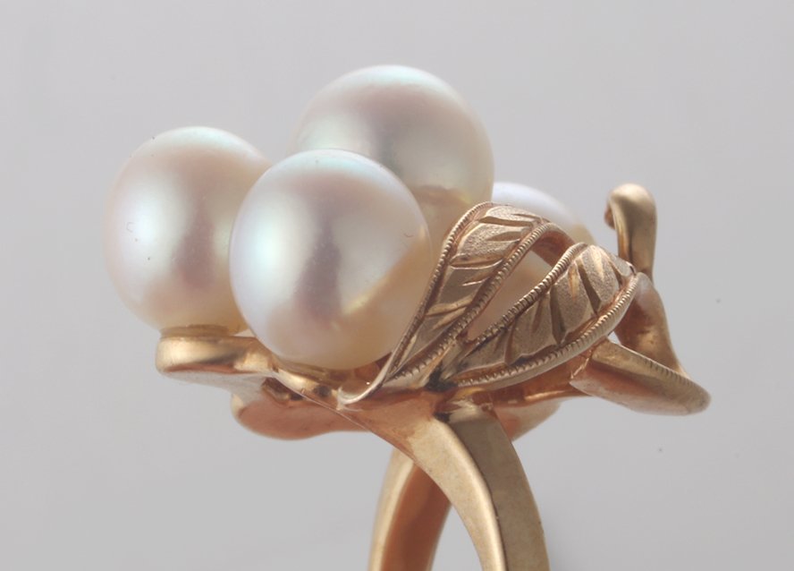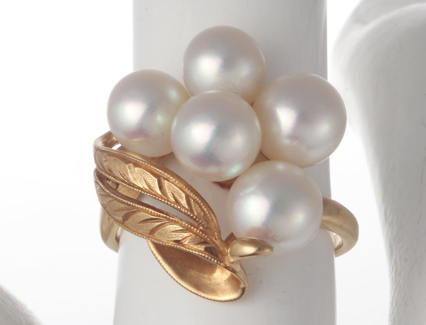 サイズ | 7号サイズ、真珠直径5.0〜5.5ミリ、トップ部分の最大幅18.5ミリ、リングの全高25.4ミリ、リング全体の横幅17.8ミリ |