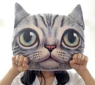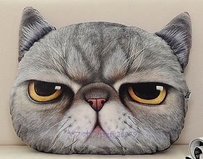 M448☆新品クッション リアル 不機嫌なネコの顔 プリント かわいい ダイカット