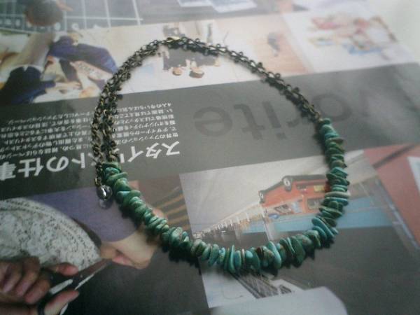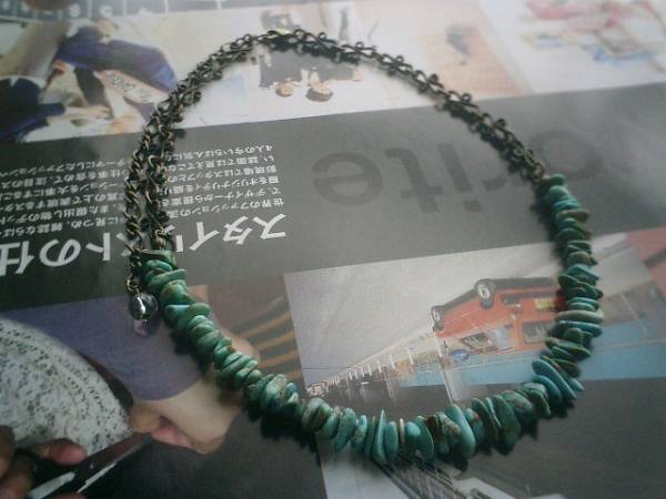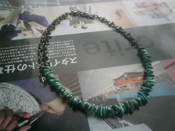 ガラスの靴の女の子・・シリーズです♪初夏の風・ターコイズのネックレスです♪ナチュラルな色合いのターコイズのさざれはお花のチェーンと合わせて可憐な表情です♪長さは全長55センチで調節自由です♪お揃いのネックレスも出品しています♪♪シンプルで飽きのこないいつまでも着けられるデザインを考えて作りました♪ハンドメイドをご理解頂いてノークレーム、ノーリターンでお願いします |
