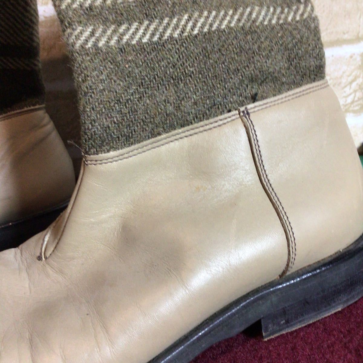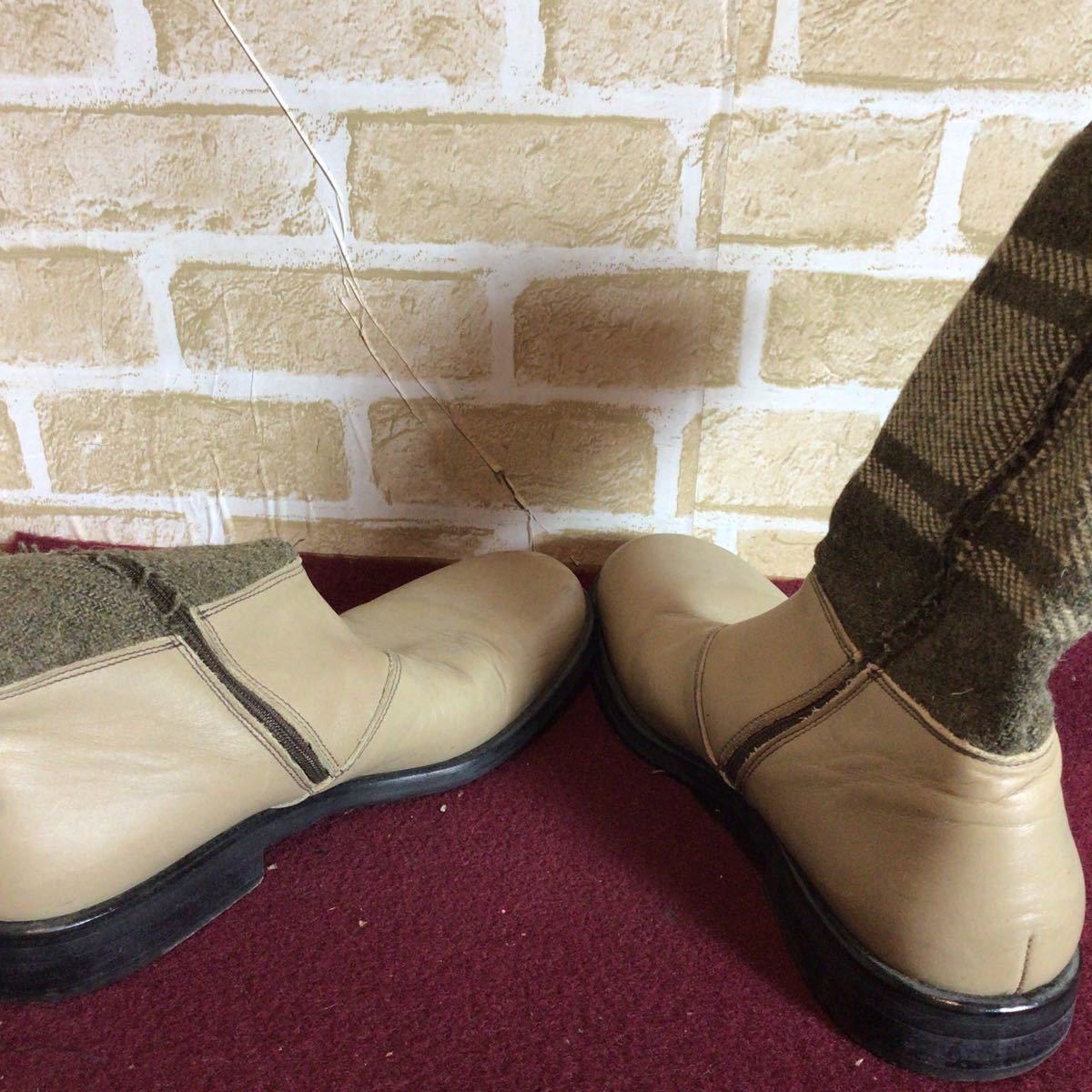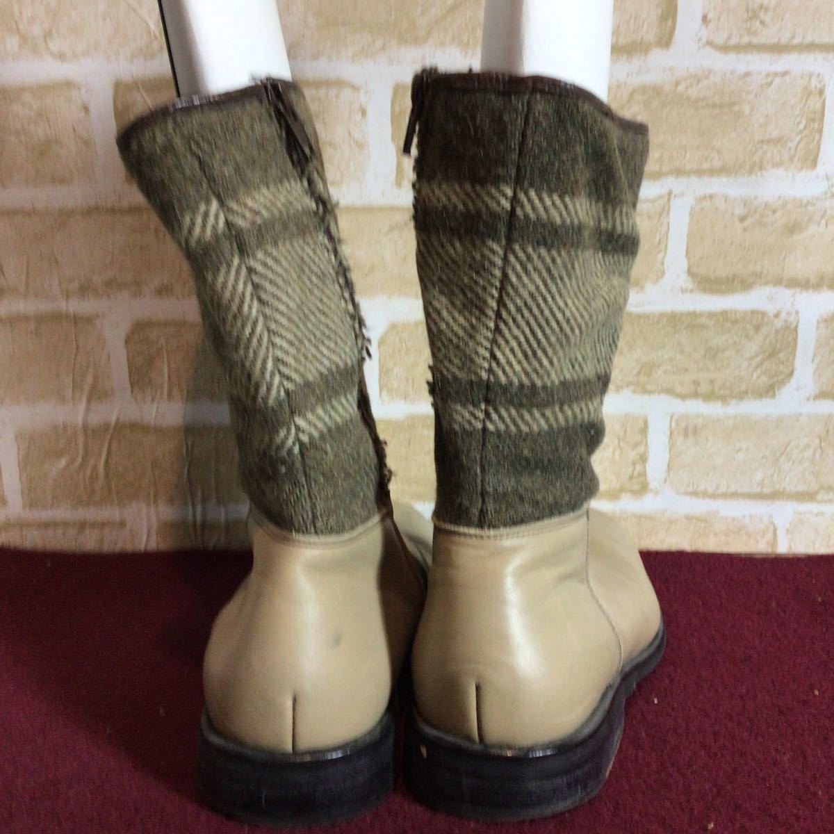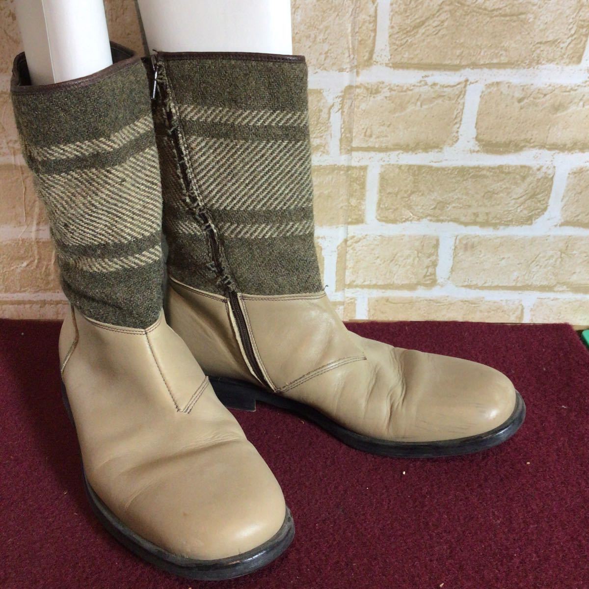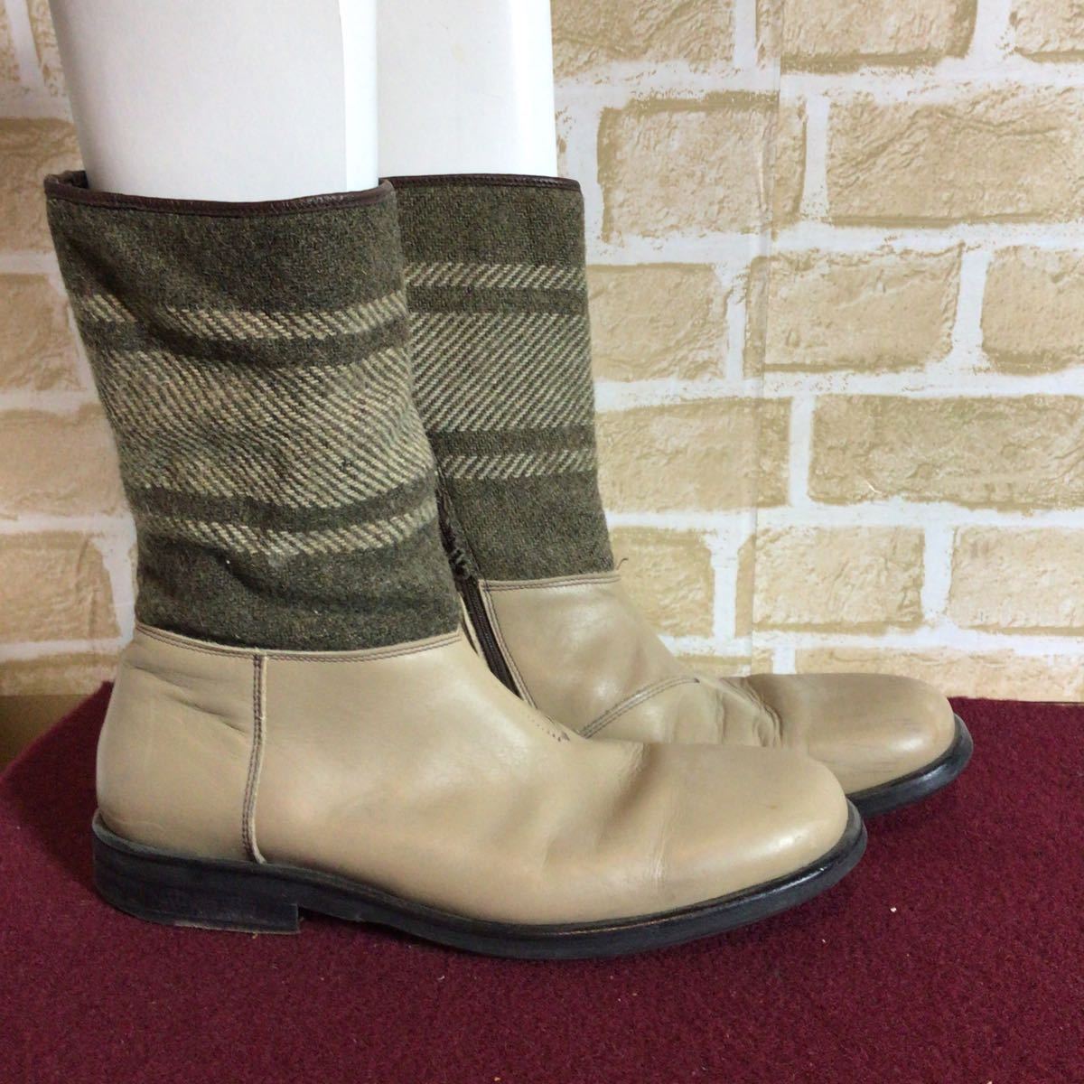 【売り切り!送料無料!】A-233 CLONE!デザインブーツ!サイズ 41 25.0〜25.5位!ベージュ!ニット!レザー!異素材mix!秋冬!中古!