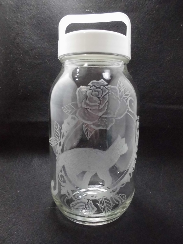 グラスリッツェン ハンドルキーパー 薔薇と猫 蓋ホワイト 〇