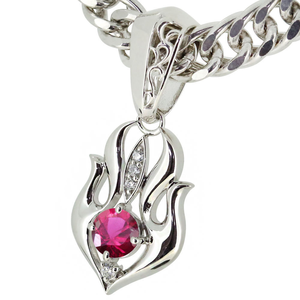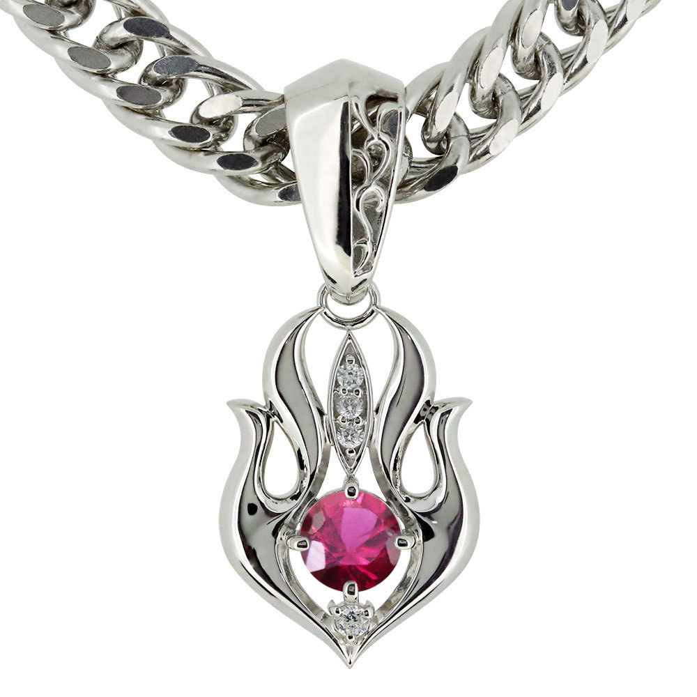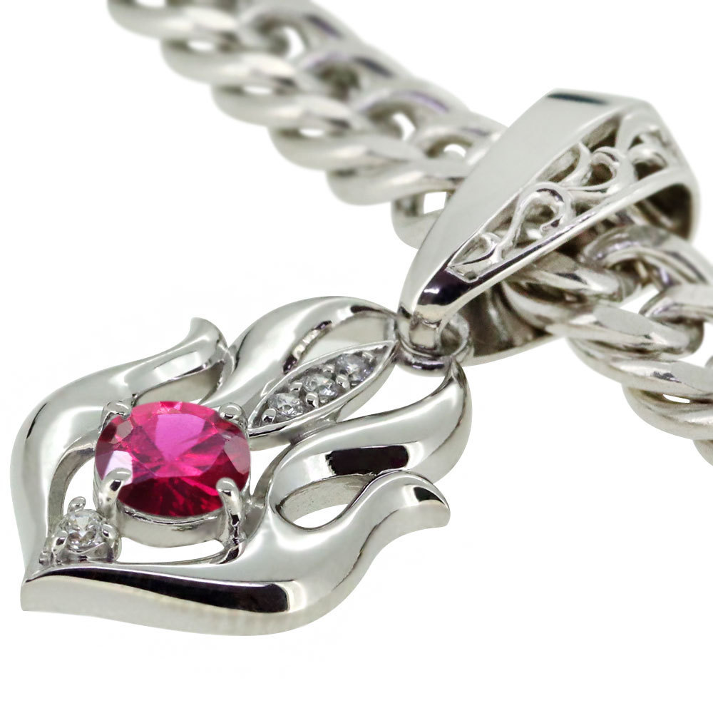 7月誕生石ルビーを使用したシルバー製の、メンズネックレス(ペンダント)です。