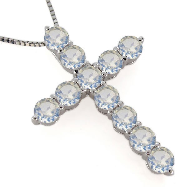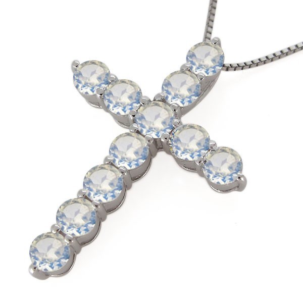 クロス ネックレス プラチナ レディース ロイヤルブルームーンストーン 6月誕生石 十字架 ペンダント