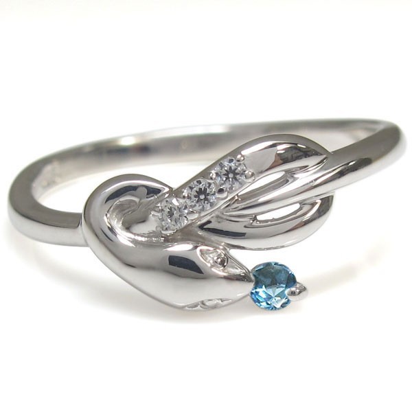 11月誕生石ブルートパーズを一粒使用した、プラチナ製のスネーク(蛇)モチーフリング(指輪)です。