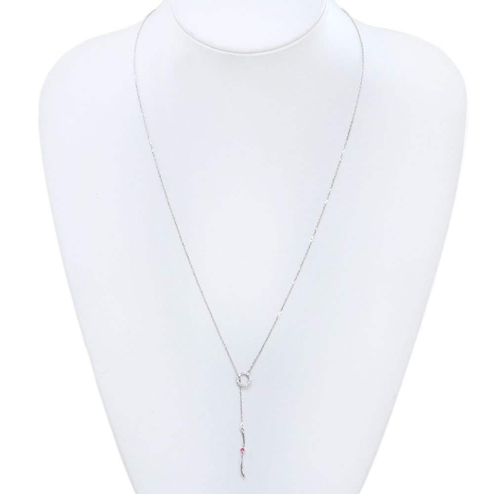 リングにバーを通すだけのラリエットタイプで、お好きな長さに調節して楽しめます。