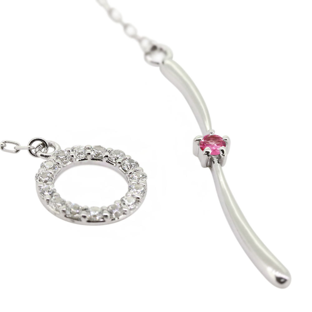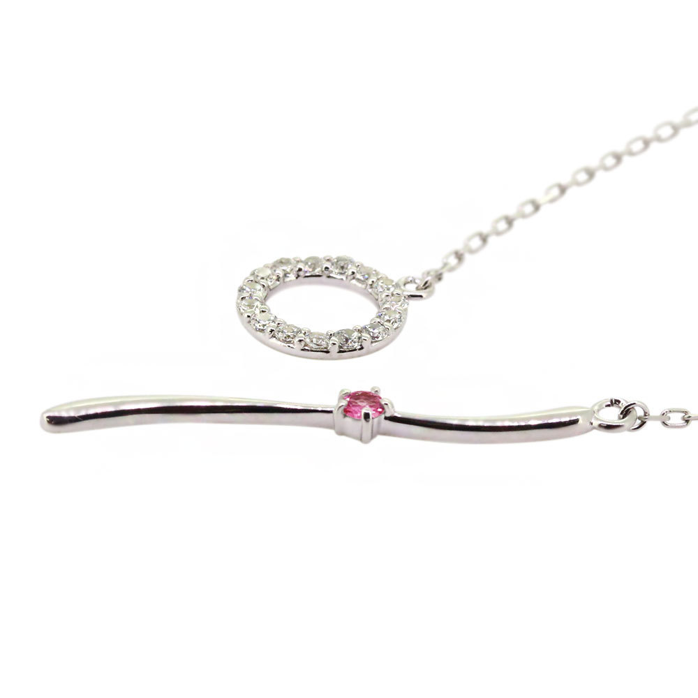10月誕生石ピンクトルマリンを使用したプラチナ製の、Y字ロングネックレスです。