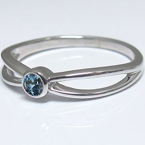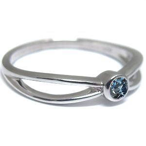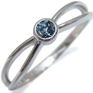 3月誕生石アクアマリンサンタマリアを一粒使用したシンプルデザインの18金製リングです。