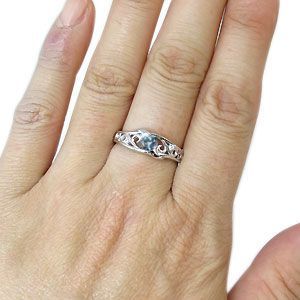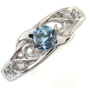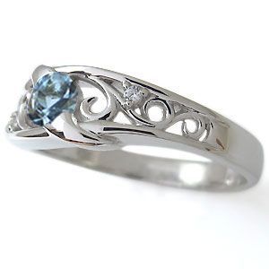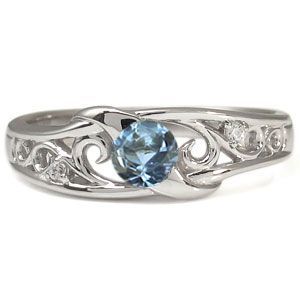 3月誕生石アクアマリンサンタマリアを一粒使用した、唐草デザインの10金製リング(指輪)です。