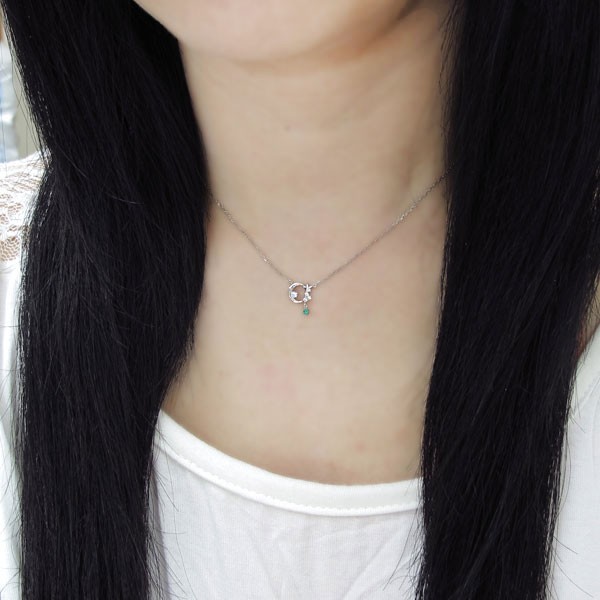 5月誕生石エメラルドを使用した、10金製の三日月(ムーン)と星(スター)モチーフネックレスペンダントです。