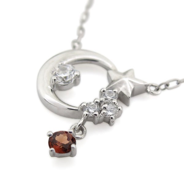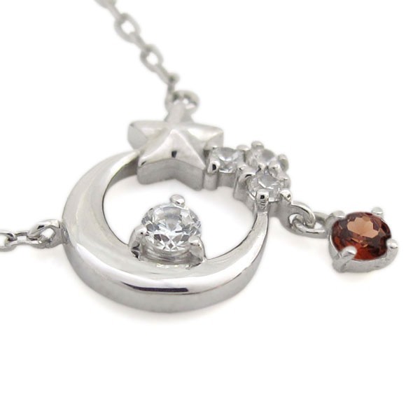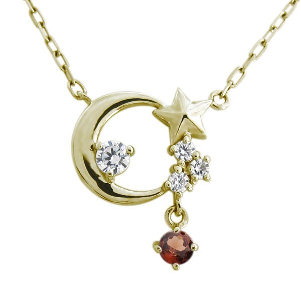 1月誕生石ガーネットを使用した、10金製の三日月(ムーン)と星(スター)モチーフネックレスペンダントです。