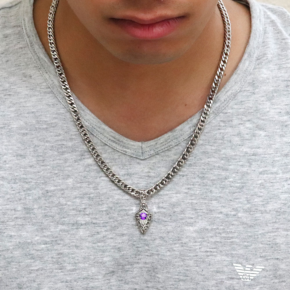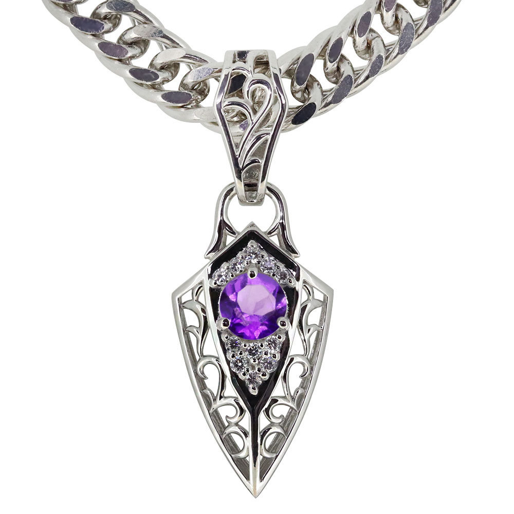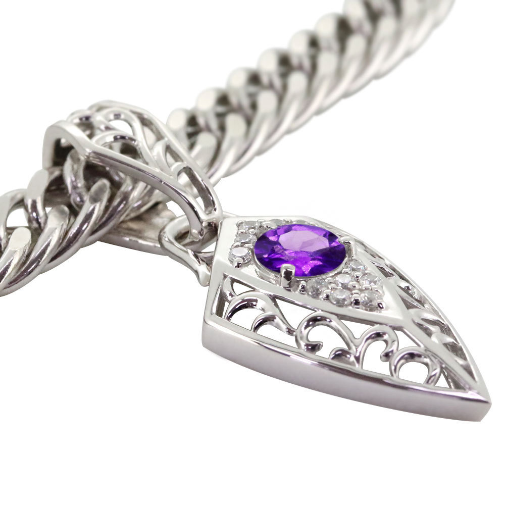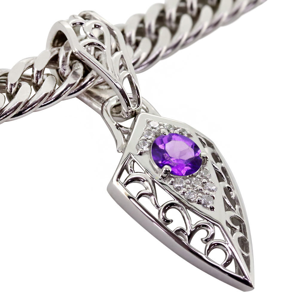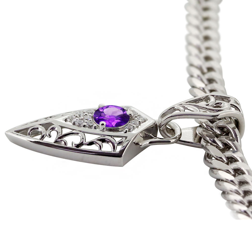 メンズネックレス 喜平 プラチナ メンズ 誕生石 2月 アメジスト ペンダント