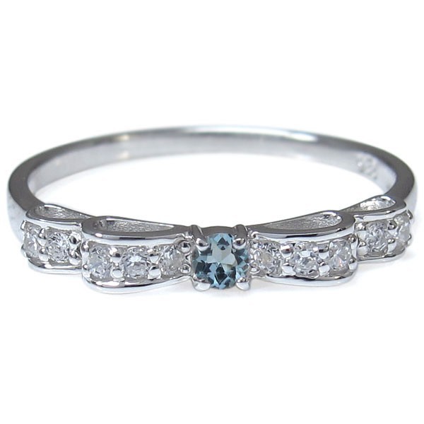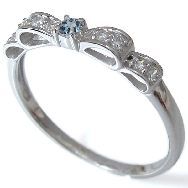 3月誕生石アクアマリンサンタマリアを使用した、リボンモチーフの18金製リング(指輪)です。