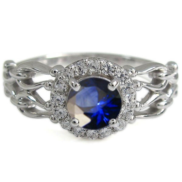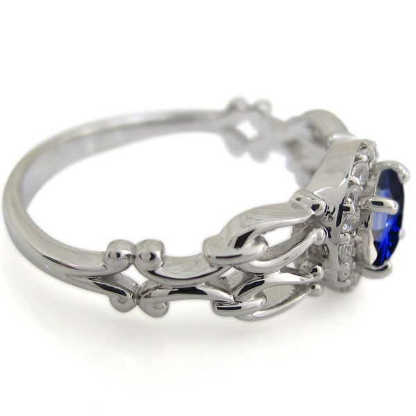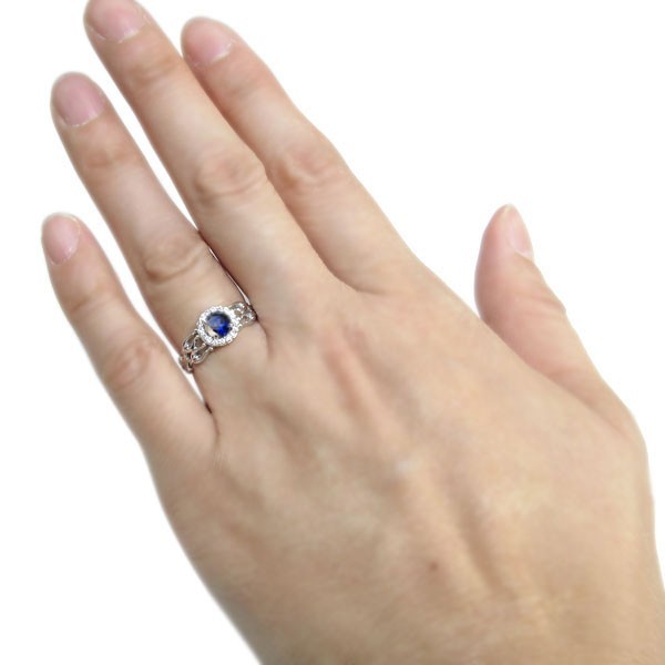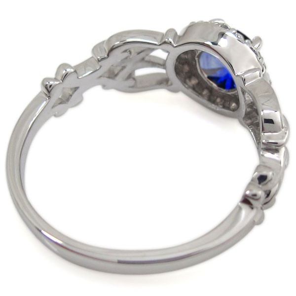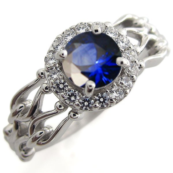 9月誕生石サファイアを一粒使用した、プラチナ製の取り巻きデザインリング(指輪)です。