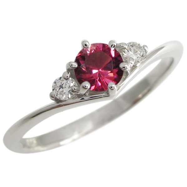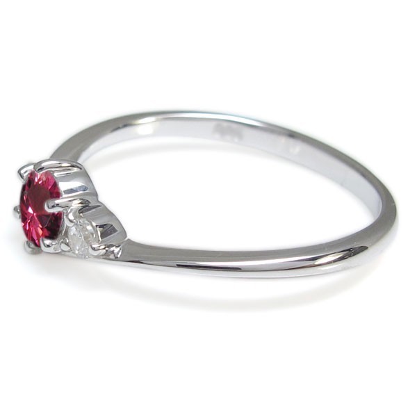 7月誕生石ルビーを使用したプラチナ製の、V字デザインリング(指輪)です。