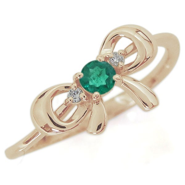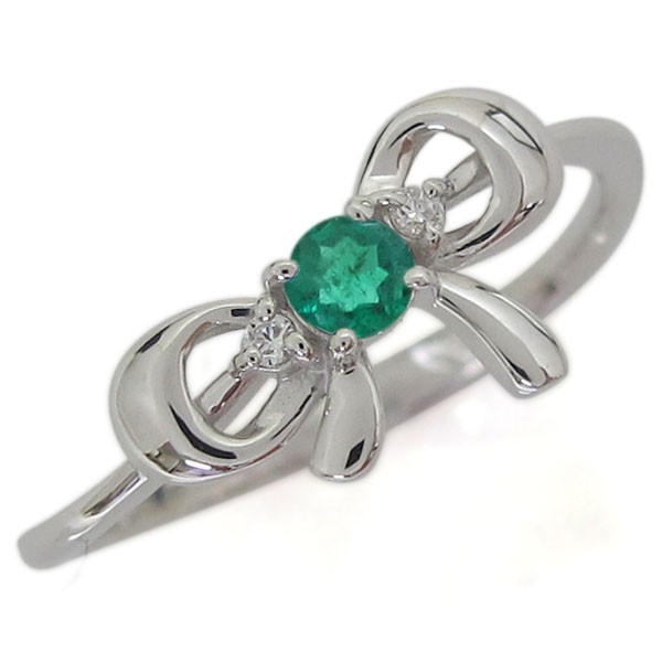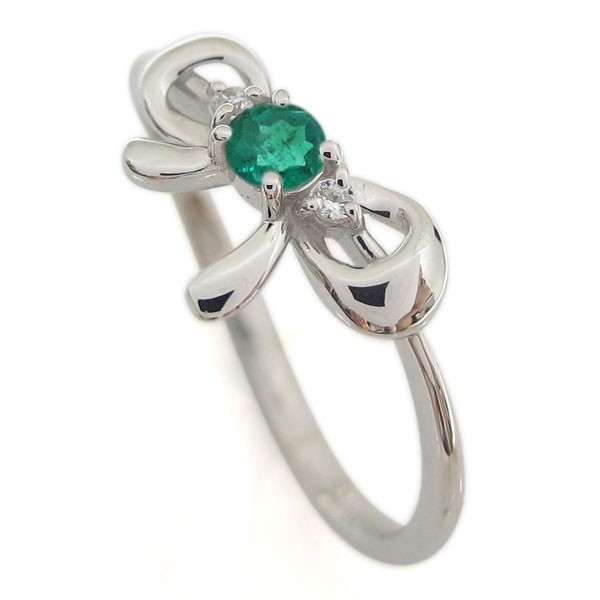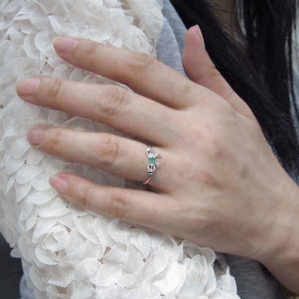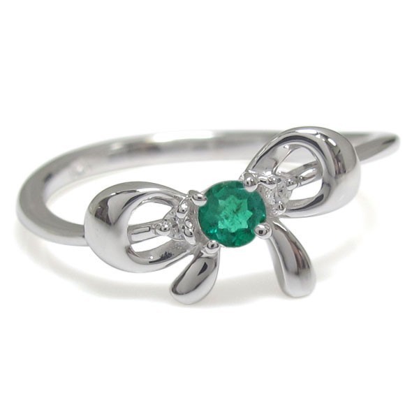 指輪 リボン レディースリング エメラルド シルバー 可愛い