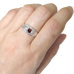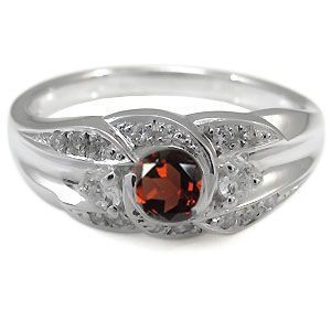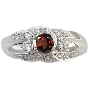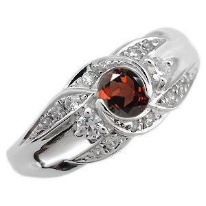 1月誕生石ガーネットを一粒使用した、華やかなデザインのプラチナ製リング(指輪)です。
