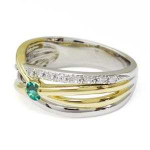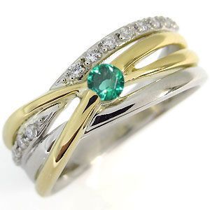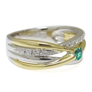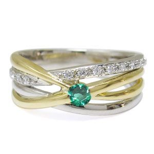 コンビ リング プラチナ 18金 一粒 エメラルド 指輪5月誕生石エメラルドを一粒使用した、プラチナと18金製のコンビリング(指輪)です。