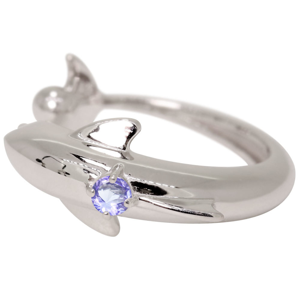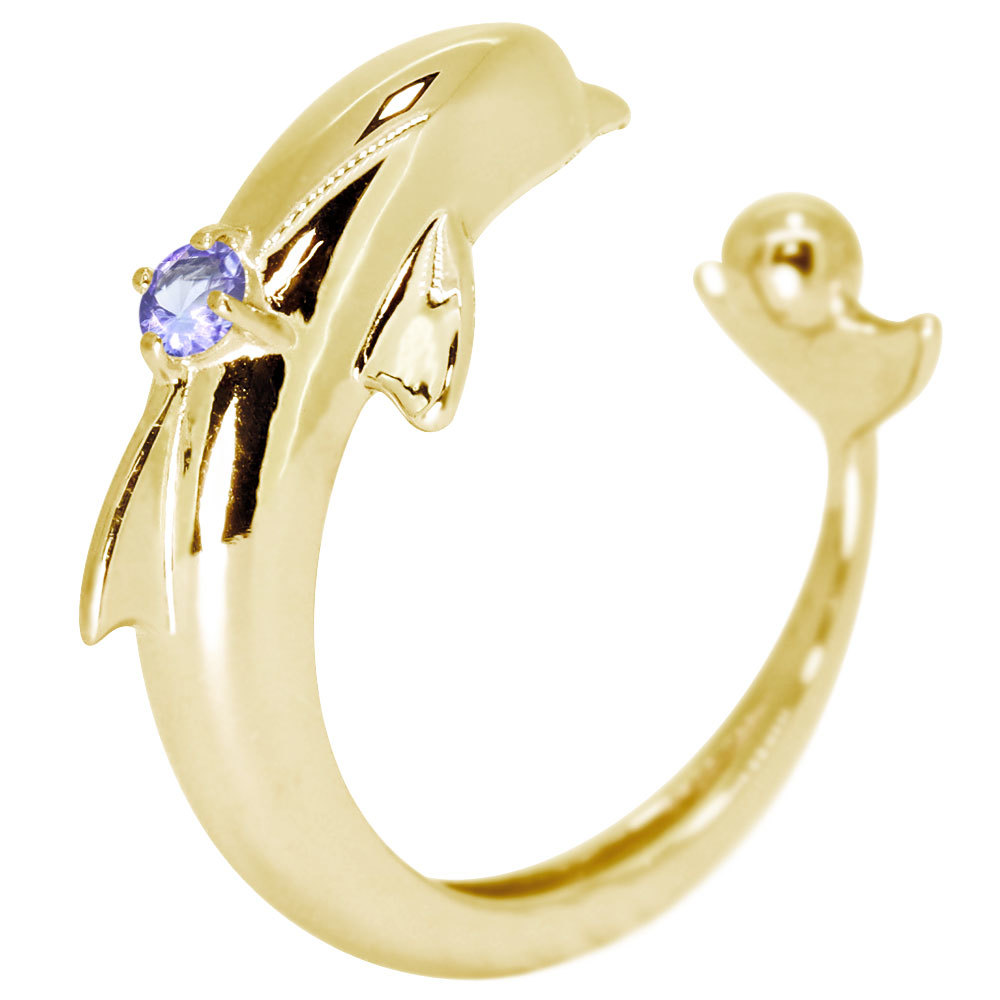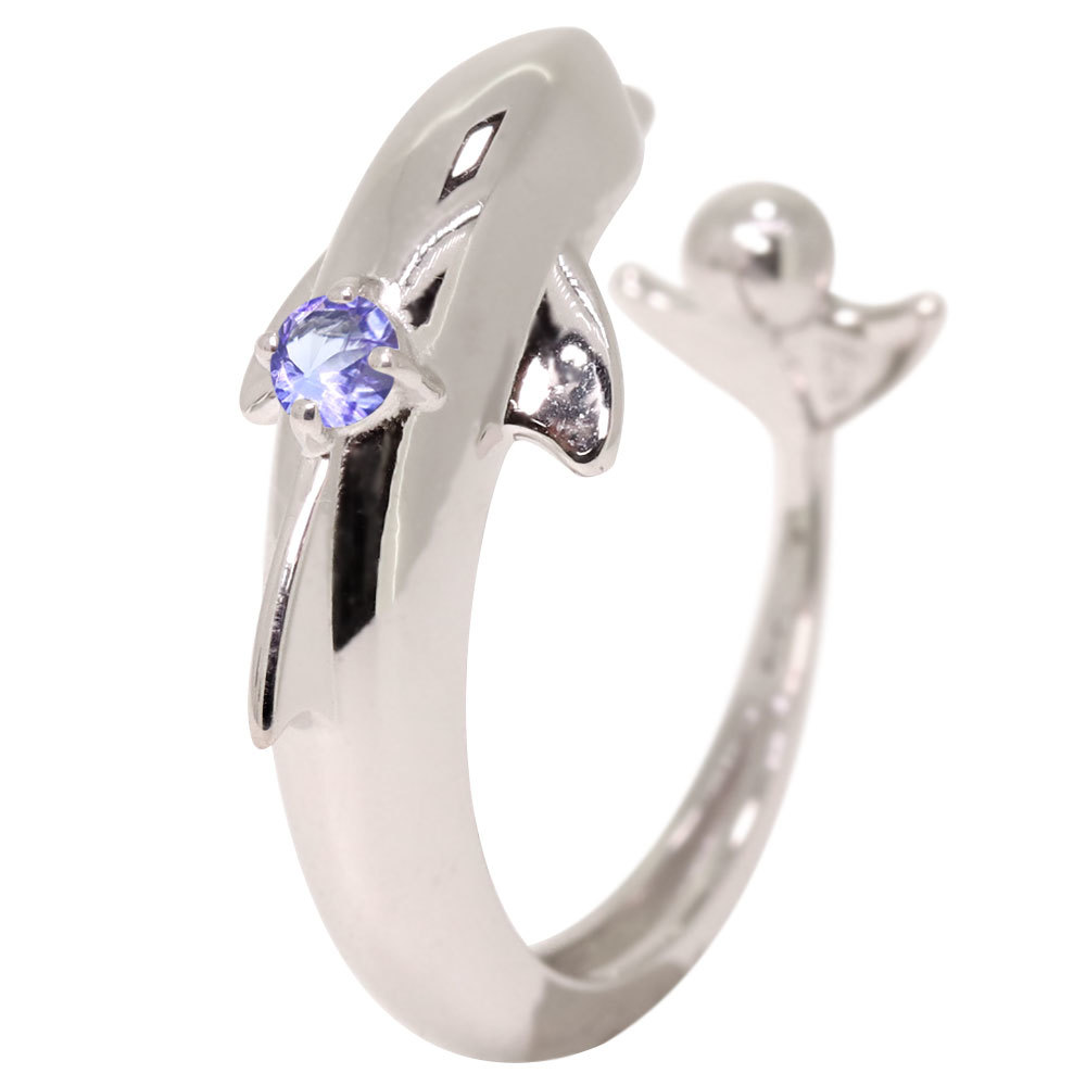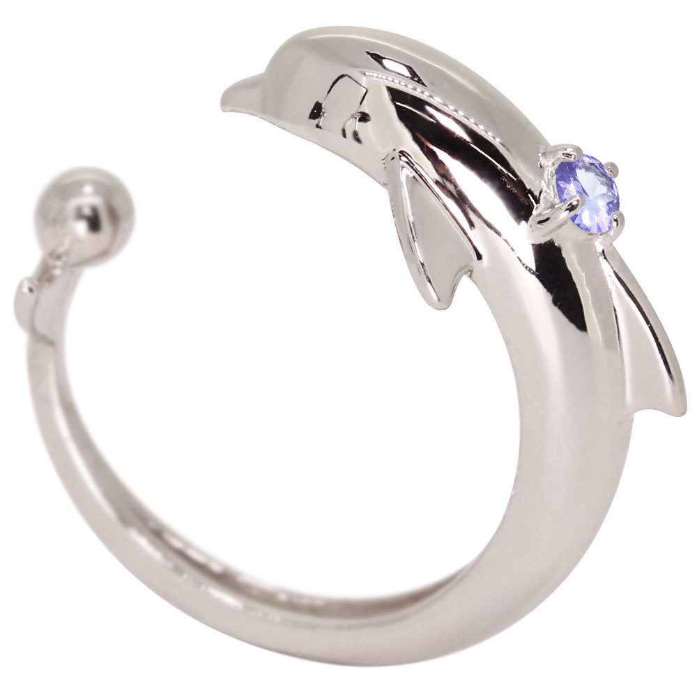 12月誕生石タンザナイトを使用したシルバー製の、イルカ(ドルフィン)モチーフのイヤーカフです。