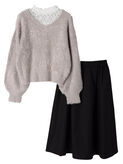 レディライクなレースプルオーバー、上品なスカートの3点セットです。