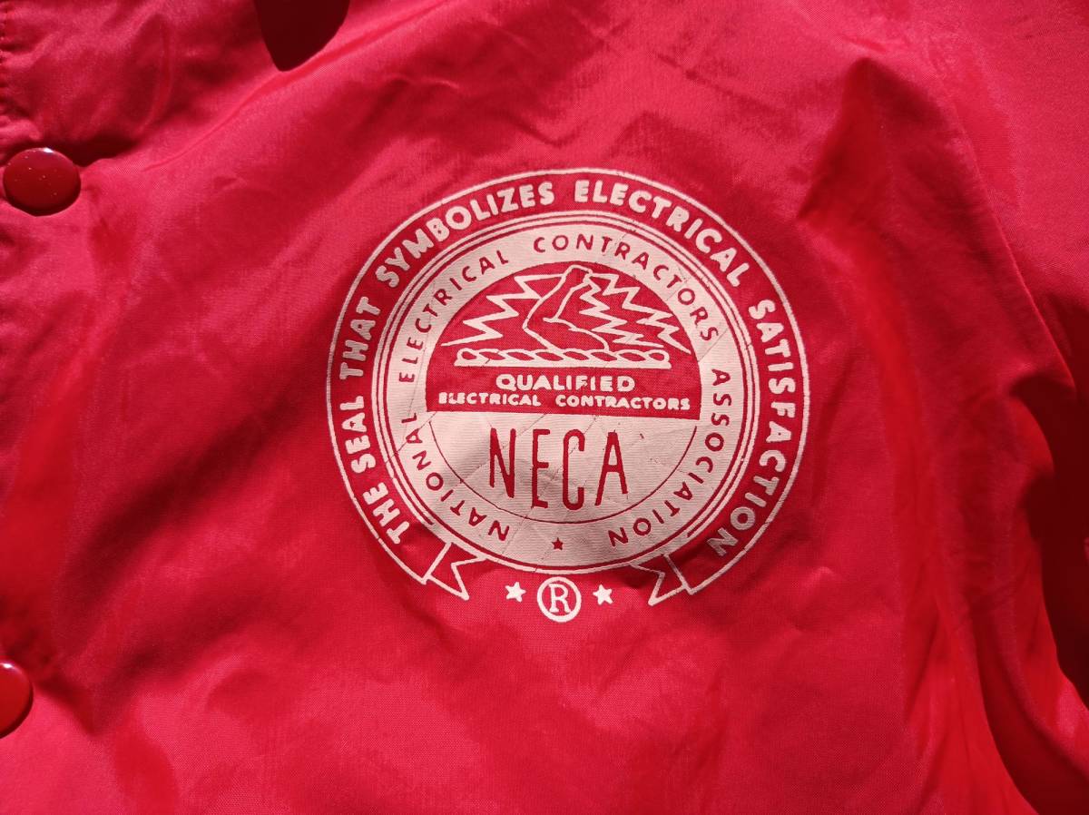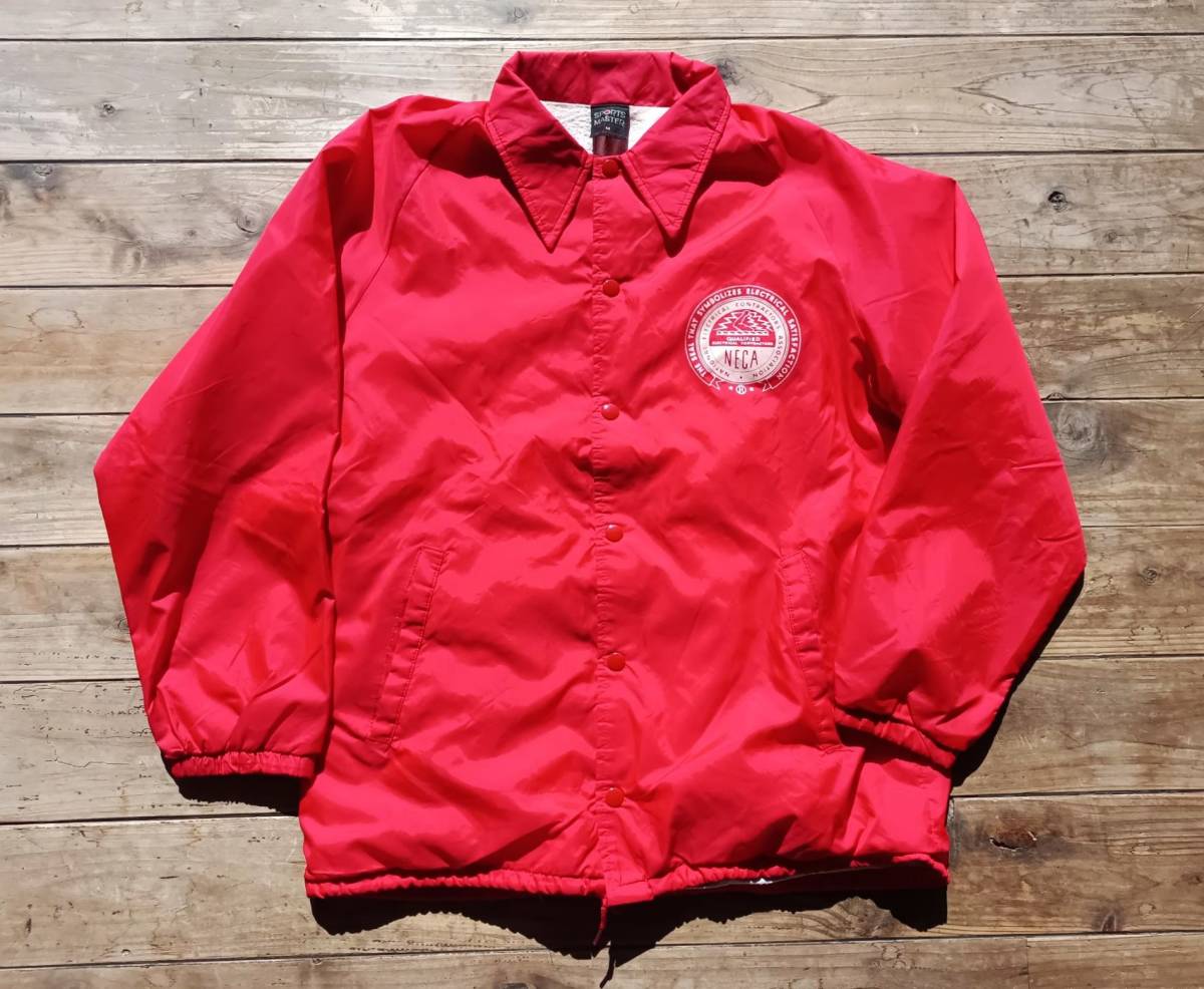 送料無料♪USA製SPORTS MASTER コーチジャケット 裏地付 M 赤 NECA National Electrical Contractors Association 企業物 アメリカ製古着