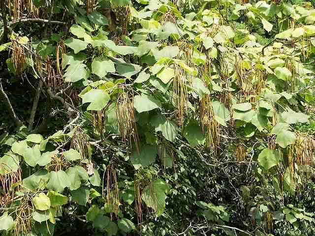 キササゲは実が生薬になります。長く垂れさがる実がなります。