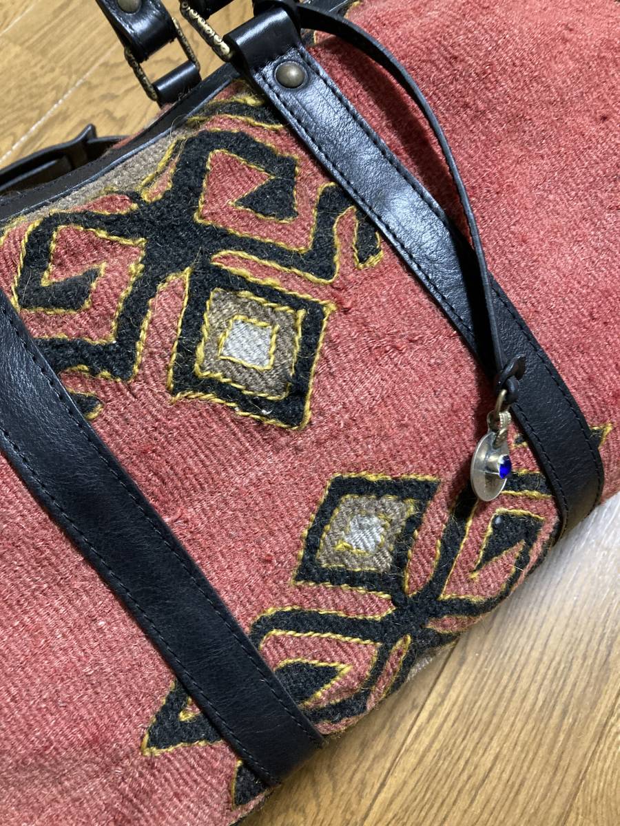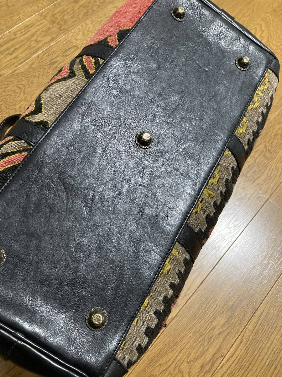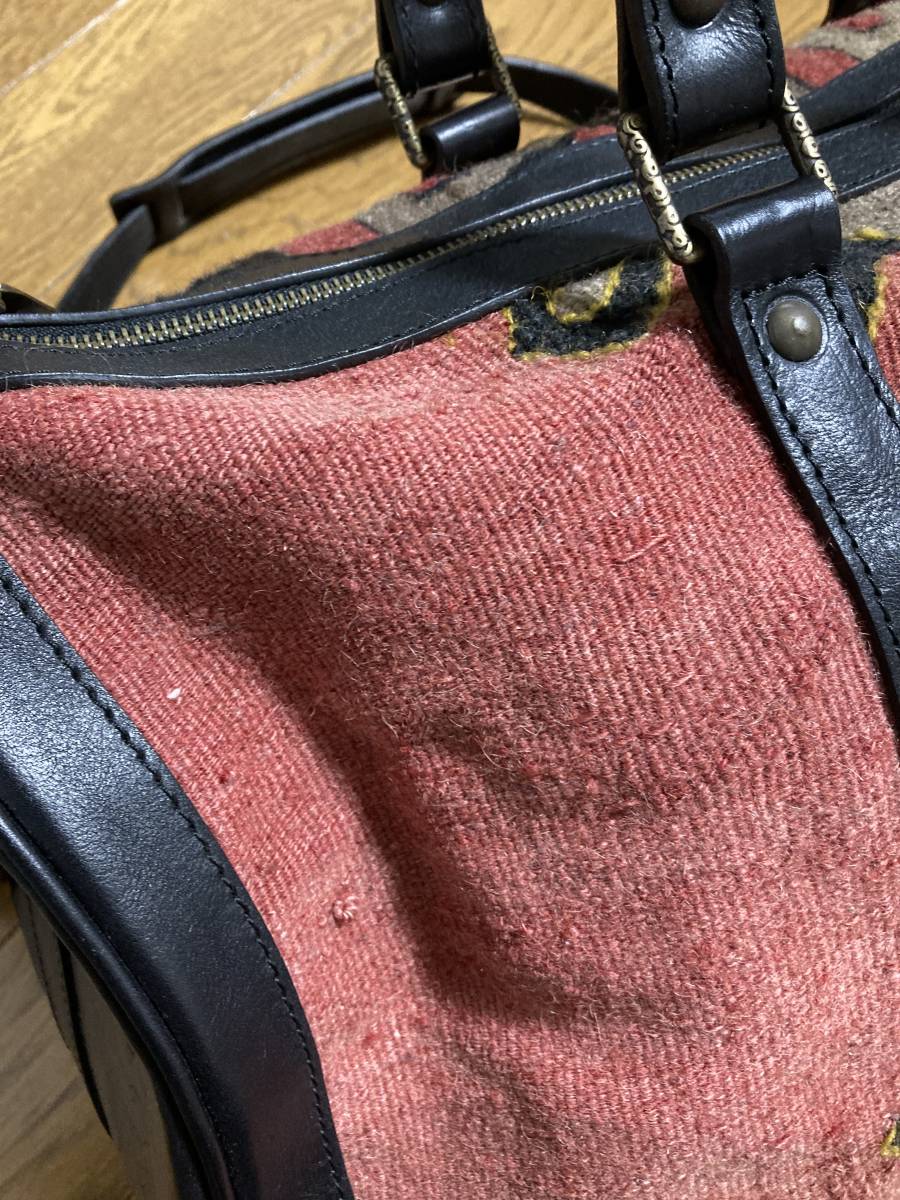 美品☆[Progetto fede] 定価88,000 ヴィンテージキリム×レザー ボストンバッグ 旅行バッグ ブラック レッド プロゲット フェデ