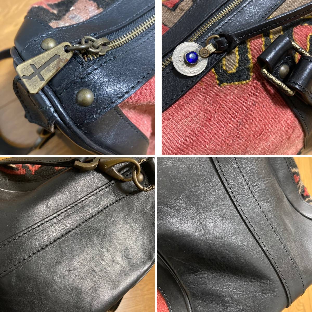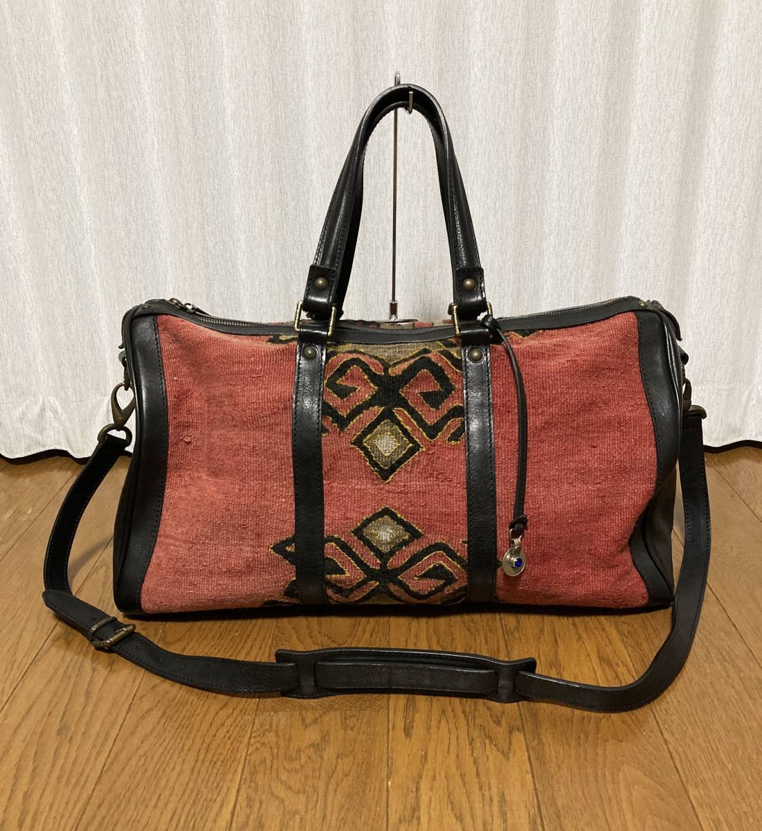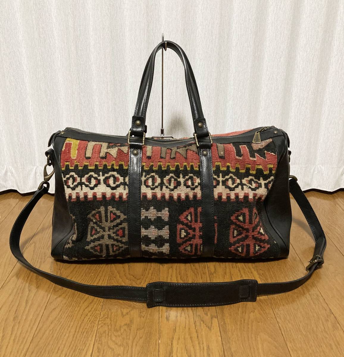 美品☆[Progetto fede] 定価88,000 ヴィンテージキリム×レザー ボストンバッグ 旅行バッグ ブラック レッド プロゲット フェデ