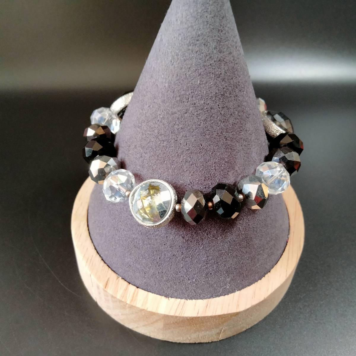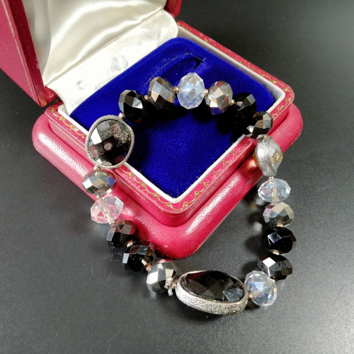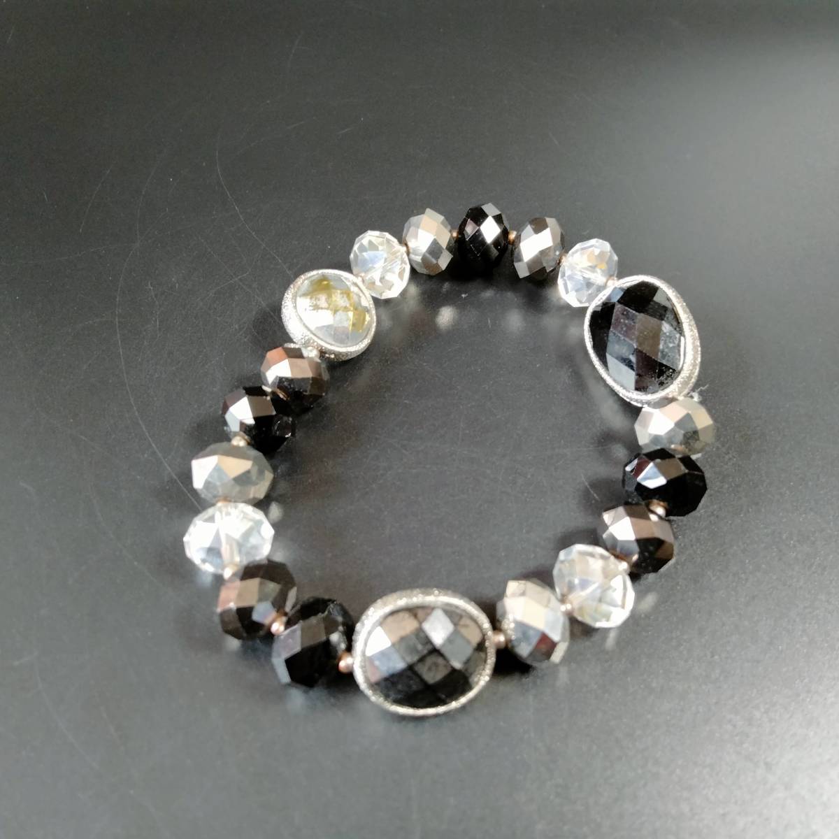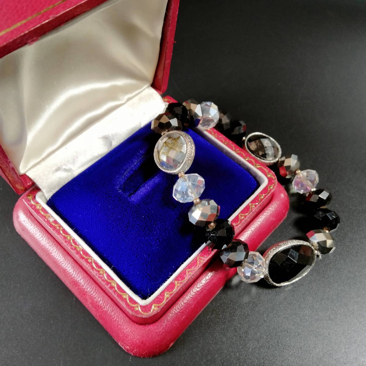 ビンテージ ブレスレット バングル ブラック系 カラーストーン アールデコ 昭和レトロ コスチューム ジュエリー アクセサリー SDAC47