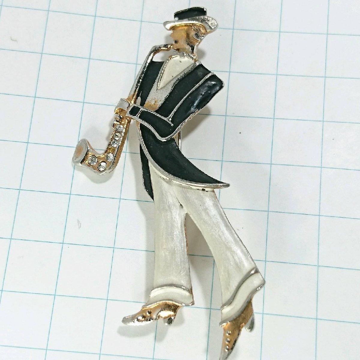 送料無料)ビンテージ☆サックス奏者☆アンティークブローチ A13722