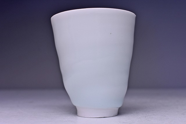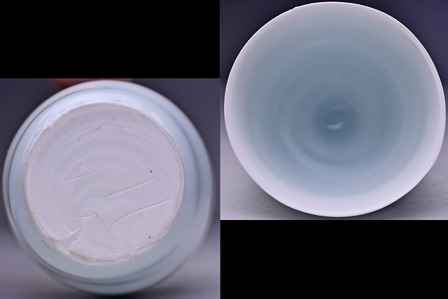 加藤委 ★ 青白磁 ぐい呑 ★ 共箱 ★ 氏独特のフォルムが美しく透き通るような青磁釉が清々しい逸品 ★ 湯呑 にも ★