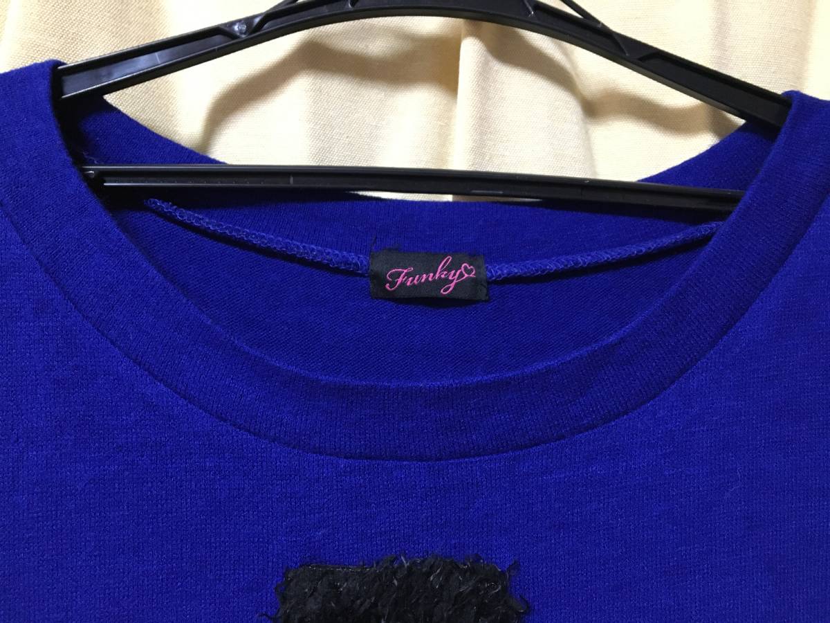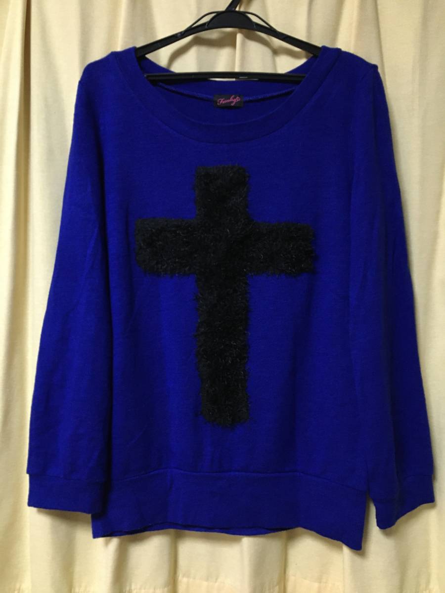 おなじみ大人気、Funky キレイなブルー×クロス長袖ニット サイズMです。