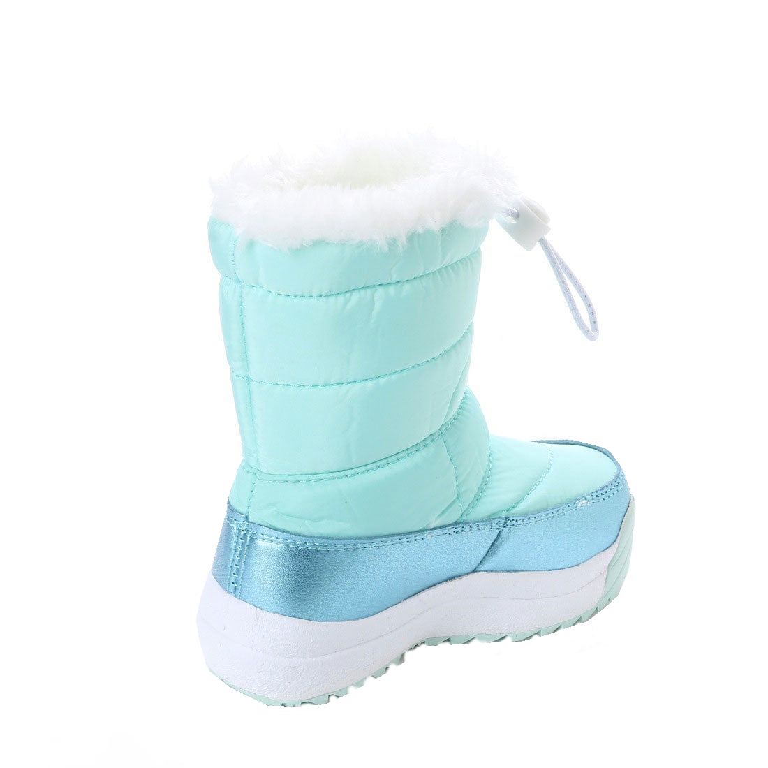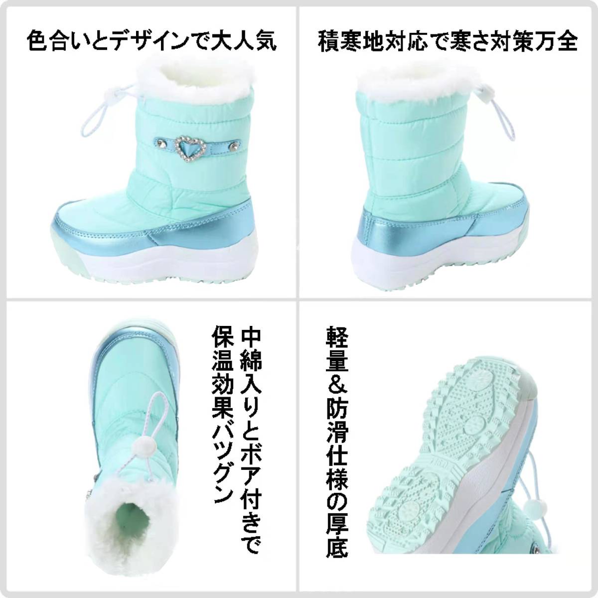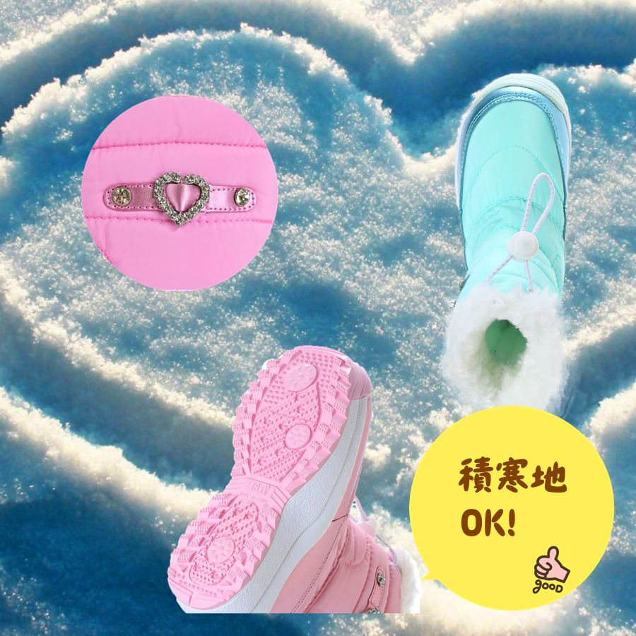 綺麗な色合いと可愛いハートチャームのデザインで大人気、女の子用防寒ダウンブーツ。