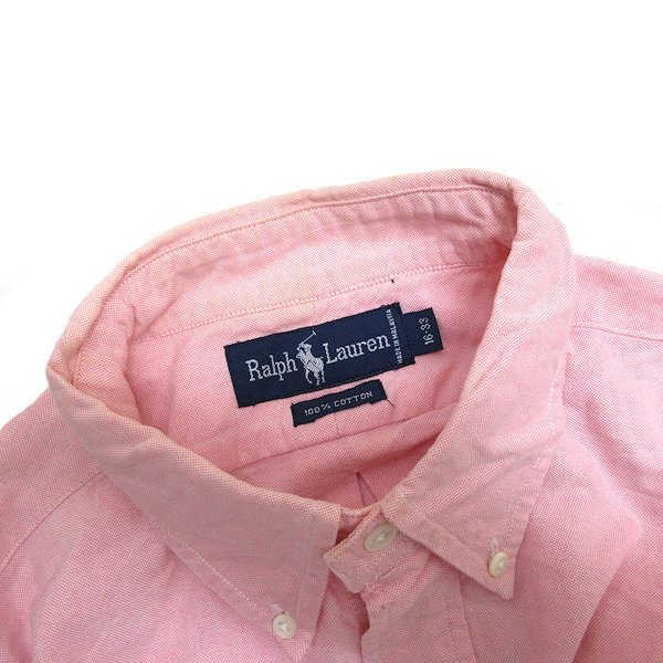 s■ラルフローレン/POLO Ralph Lauren ロゴ刺繍 長袖BDシャツ【16-33】ピンク/MENS/75【中古】