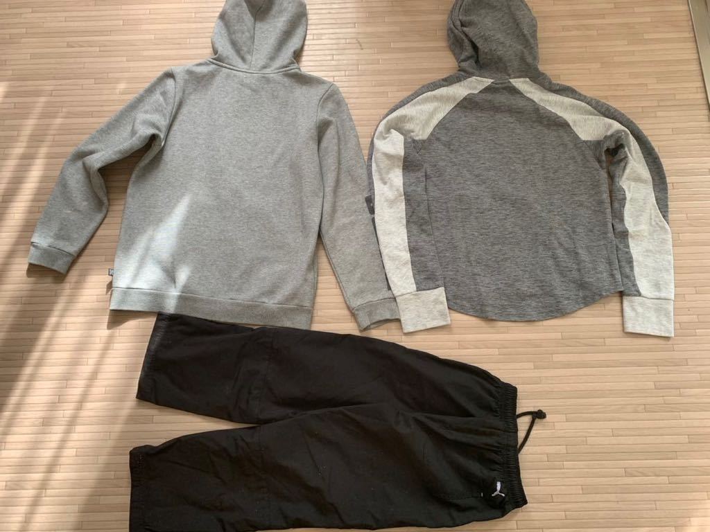 PUMAのセットです。パンツが120、上が160とSです。画像のように上の袖にヨゴレがありますが気にならないかなと思いますがご確認下さい。