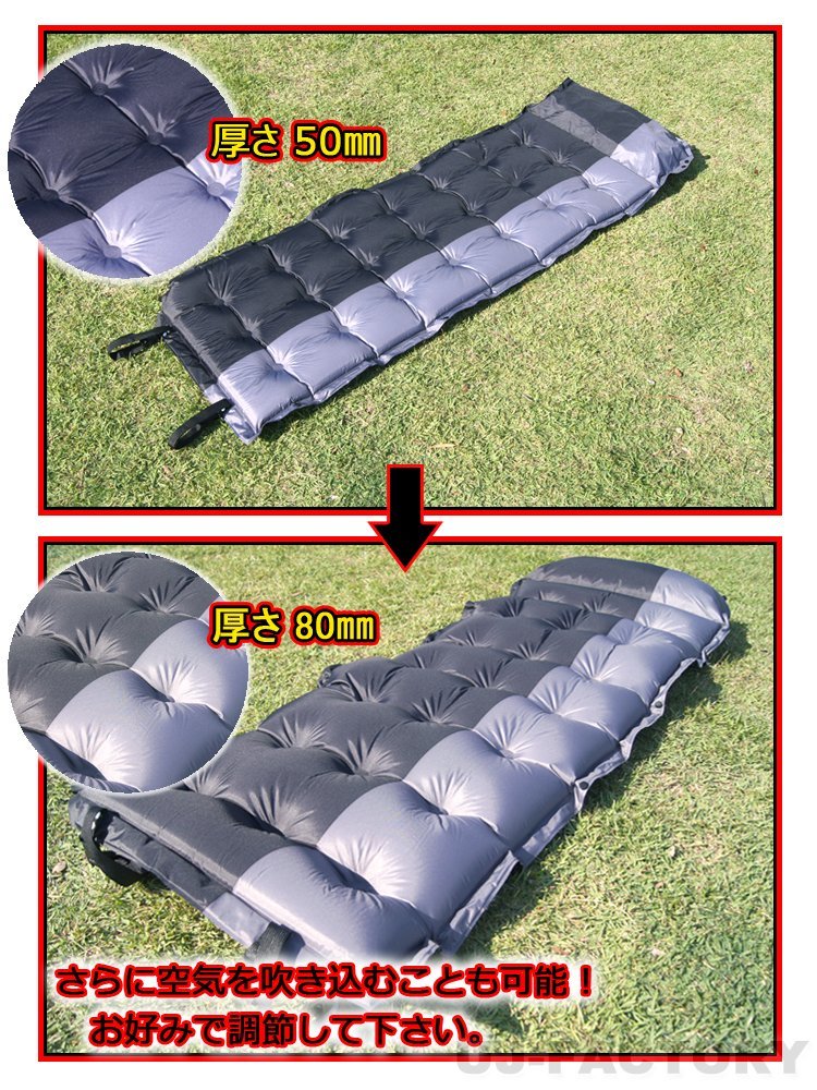 ★ 自動膨張式・枕+エアーマット ★ ♪ アウトドアライフを更に楽しく ♪ ★1900mm×630mm×50mm/連結可能で広々★ | |||||||||||||||||||||
