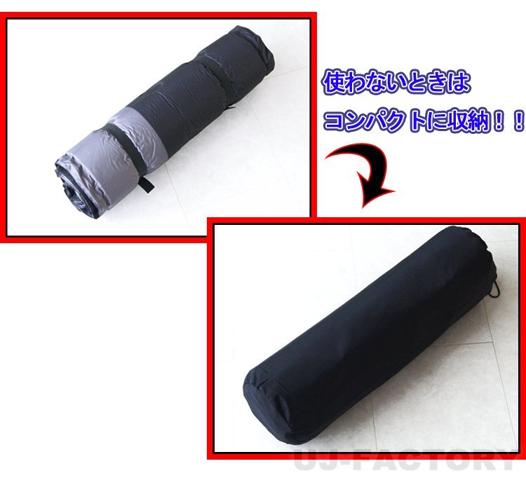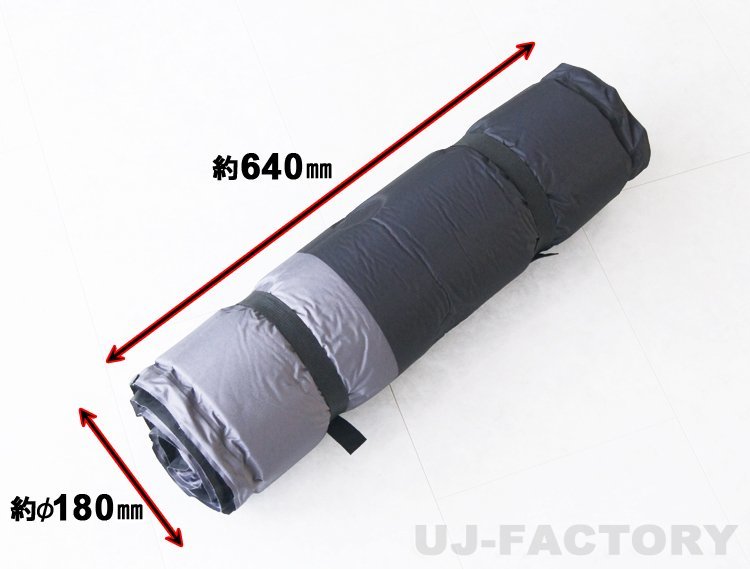 【 ここがポイント 】 ★高級感があり落ち着きのあるシックなカラー「ブラック&グレー」♪キャンプやピクニック、登山や車中泊と色んな場所で使用可能!もちろんあってほしくありませんが、災害の時もお役立ちグッズです。 ★空気取り入れバルブを開けることで自動的に膨張が始まります。バルブを開いて約5分自動膨張式で手間要らず!1900mm×630mmと十分な広さ♪厚みも約50mmあり「ふかふか」で快適です。 ★この【L】は枕部分も自動膨張式です。 ★マットは複数の連結も可能で、家族やグループでワイワイ広々と使えます。 ※このオークションは、タイトルに表記のサイズ及び数量です。