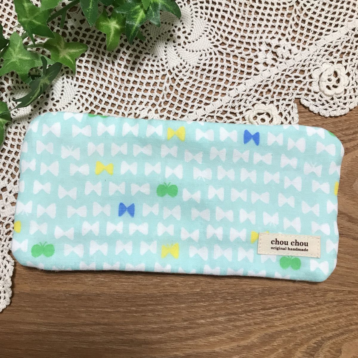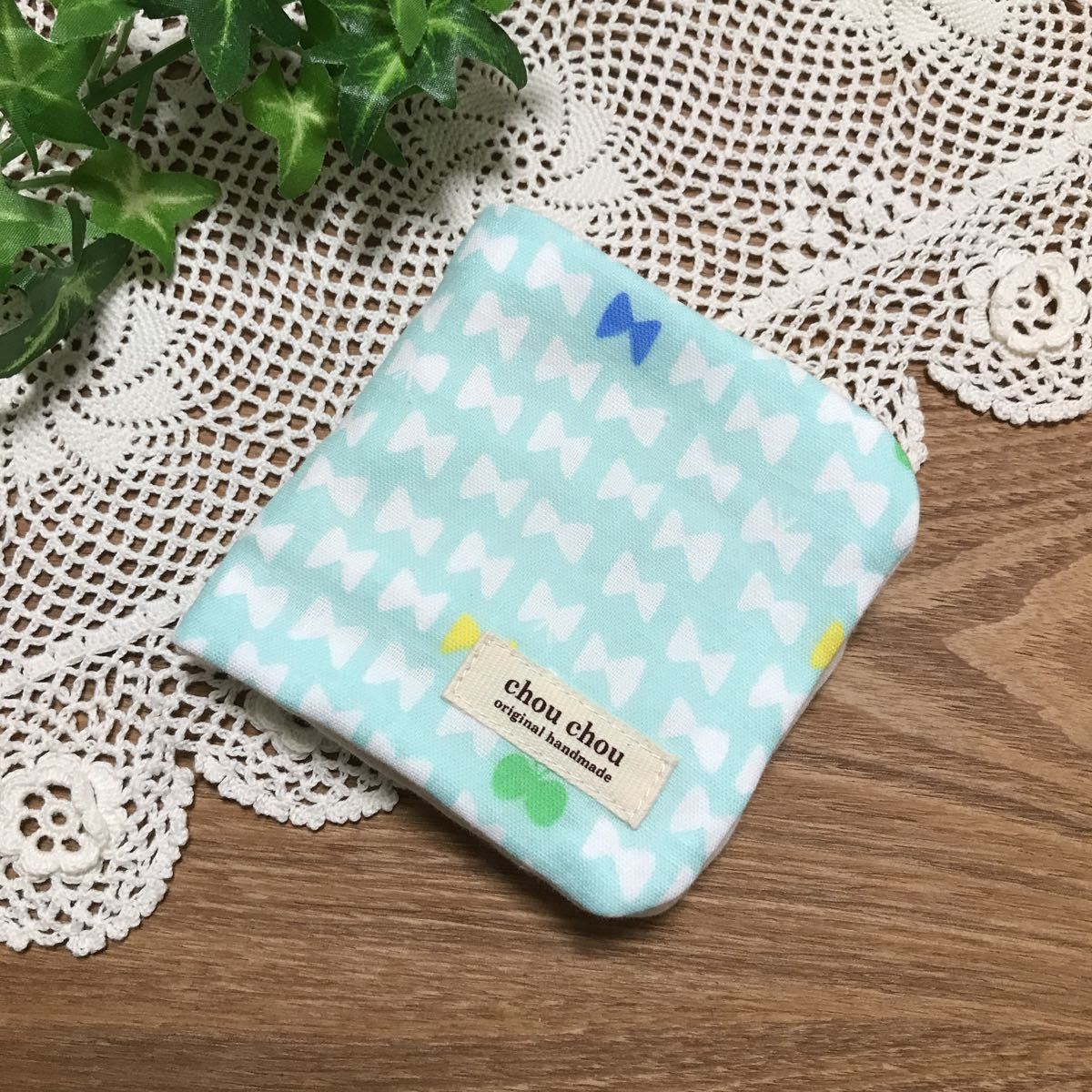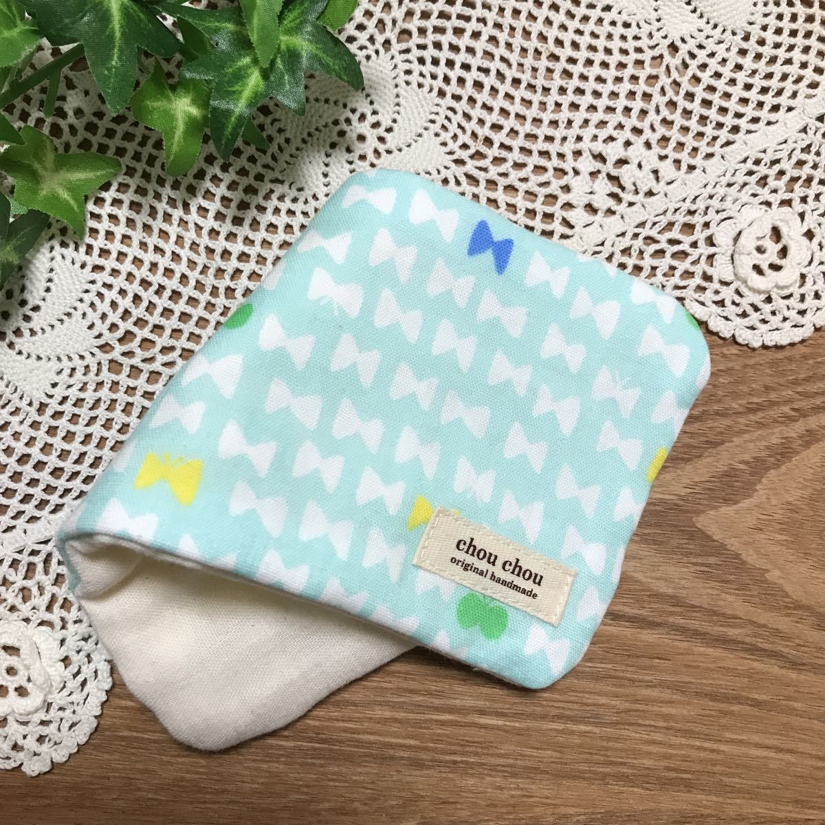 ポイントに綿レースやミニリボン、プリントタグを付けています(タグはスタンプではなく印刷されたものです。かわいいアシアトヤさんのものが多いです。